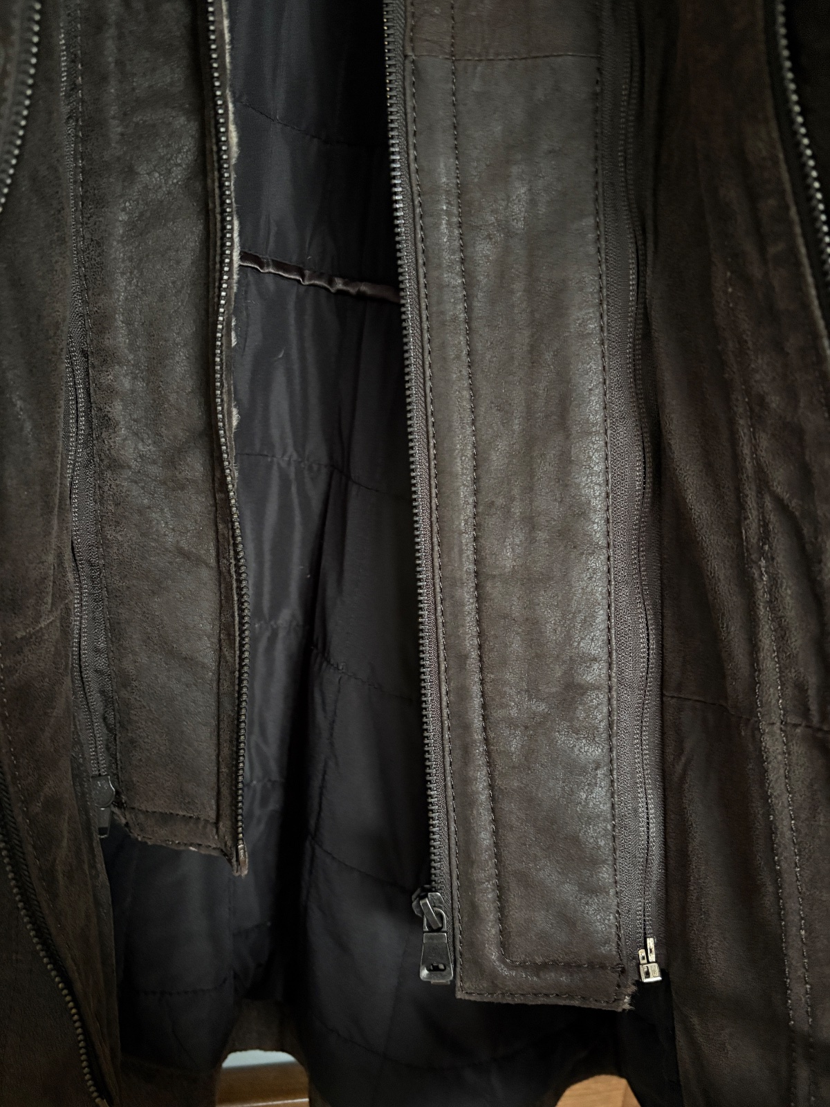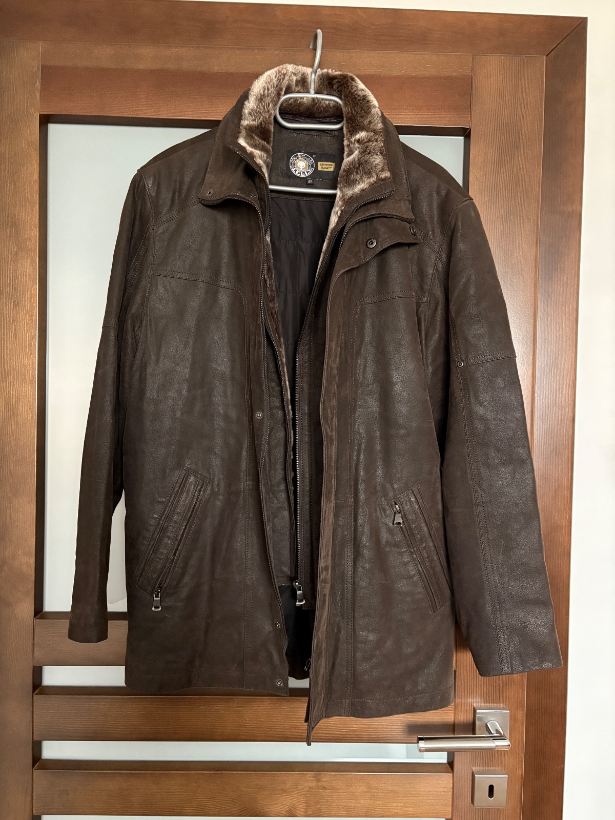 Tmavohnedá kožená kvalitná bunda, nošená málo, bez poškodení. Veľkosť cca L . Odopinatelna vložka.