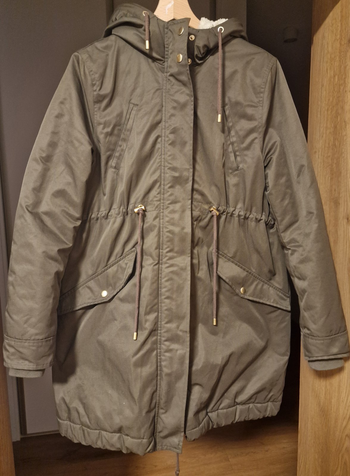 Predám super teplučkú tehotenskú bundu H&M Mama, veľ. S, sťahovanie na šnúrky, dá sa krásne prispôsobiť brušku, s odopínateľnou kožušinkou. V dobrom nosenom stave, na cvočkoch trošku patina, ale tá je tam od novoti. Cena 18,99 € plus poštovné.