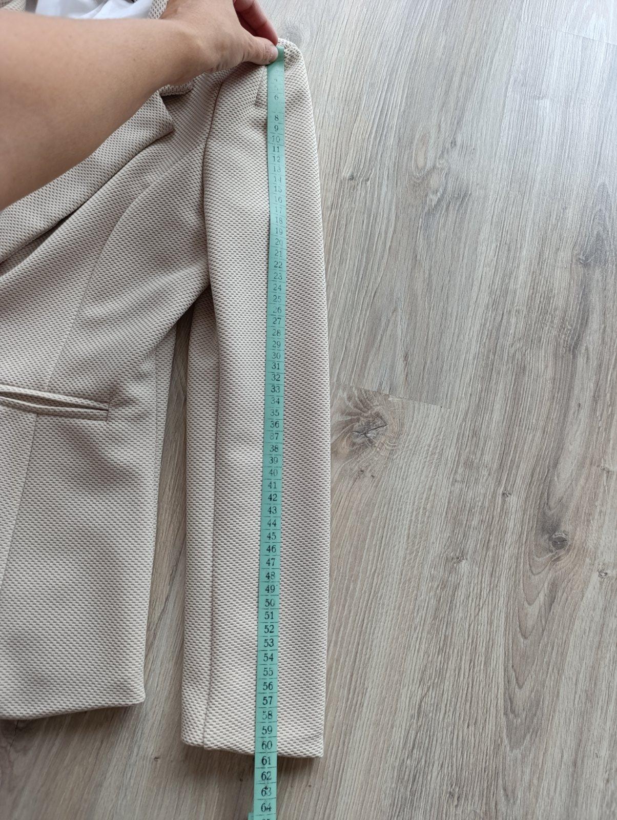 Veľmi pekné sako, takmer nenosené. Bezchybný stav. Nie je elastické. Šírka v prsiach do 50 CM, dĺžka cca 66 CM.