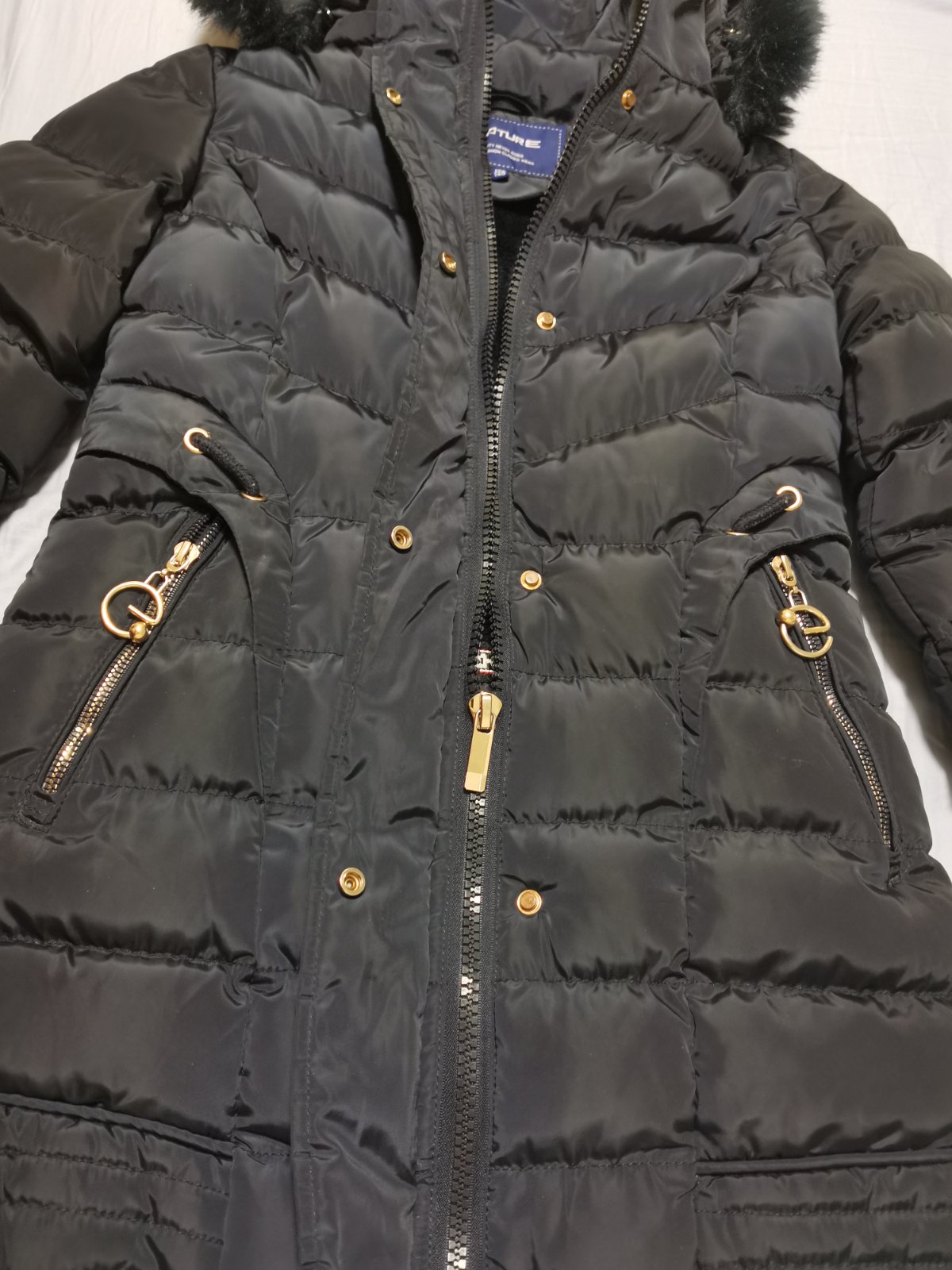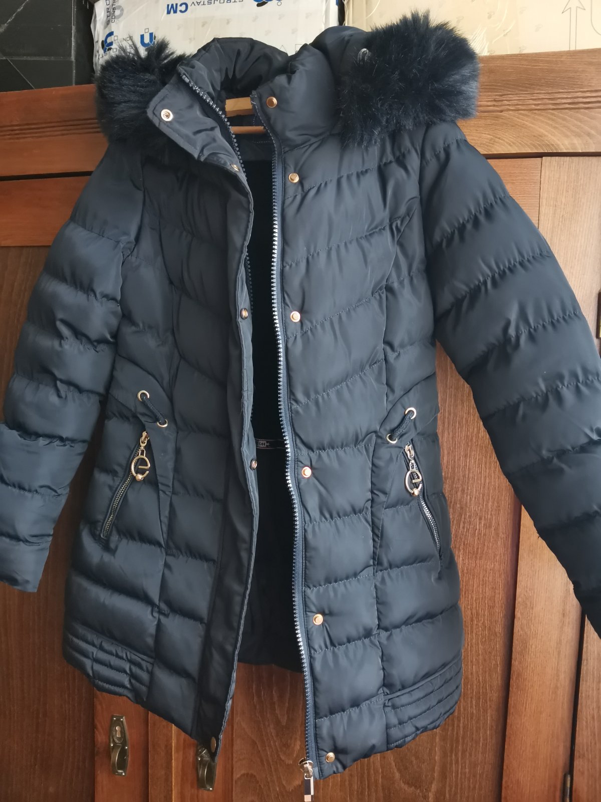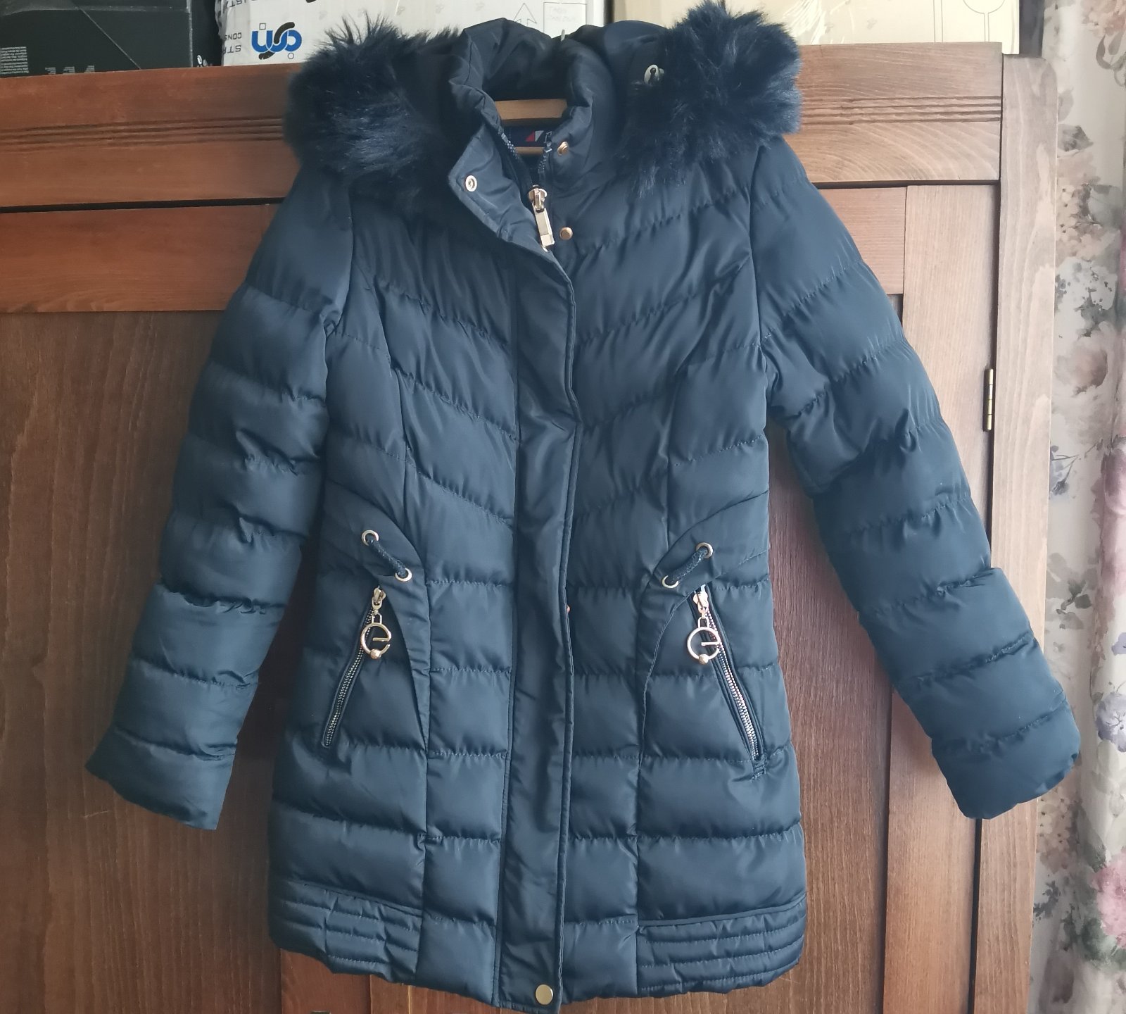 Krásny, detailne vypracovaný kabát (predĺžená bunda) pre dievčence 10-11 rokov. Je oteplený, má odopínateľnú kapucňu aj kožušinu samostatne. Ponúkam za symbolickú cenu 10€, stál podstatne viac.