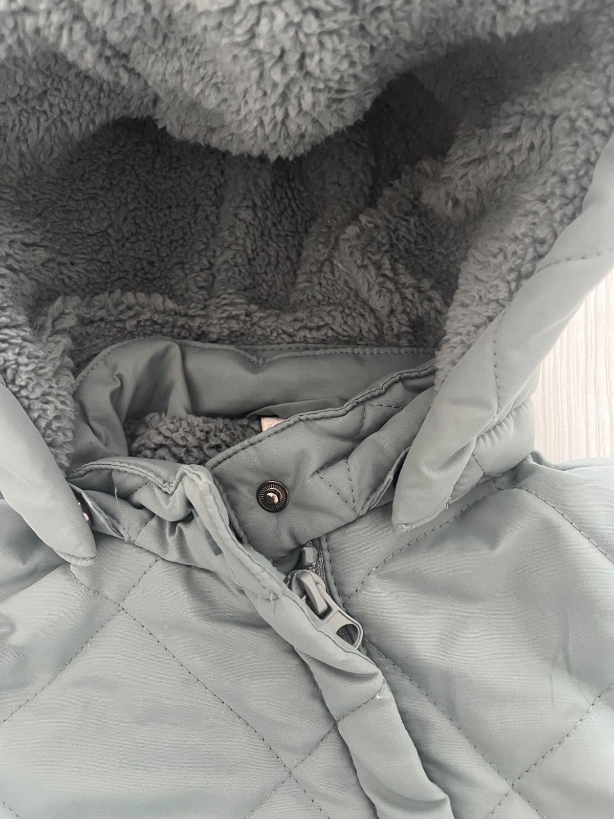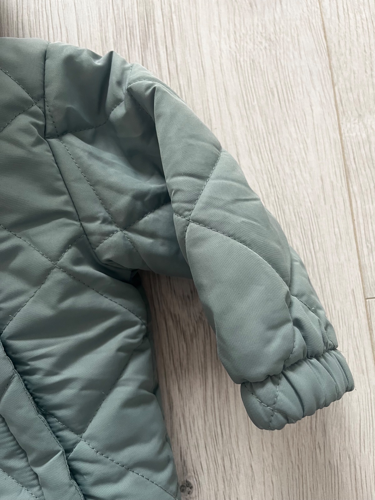 Predám perfektnú prechodnu bundicku sivo-zelenej farby s odnímateľnou kapucňou. Značka: Tchibo, veľkosť: 74/80 (9-12 mesiacov). Bundicka je zvnútra zateplená.