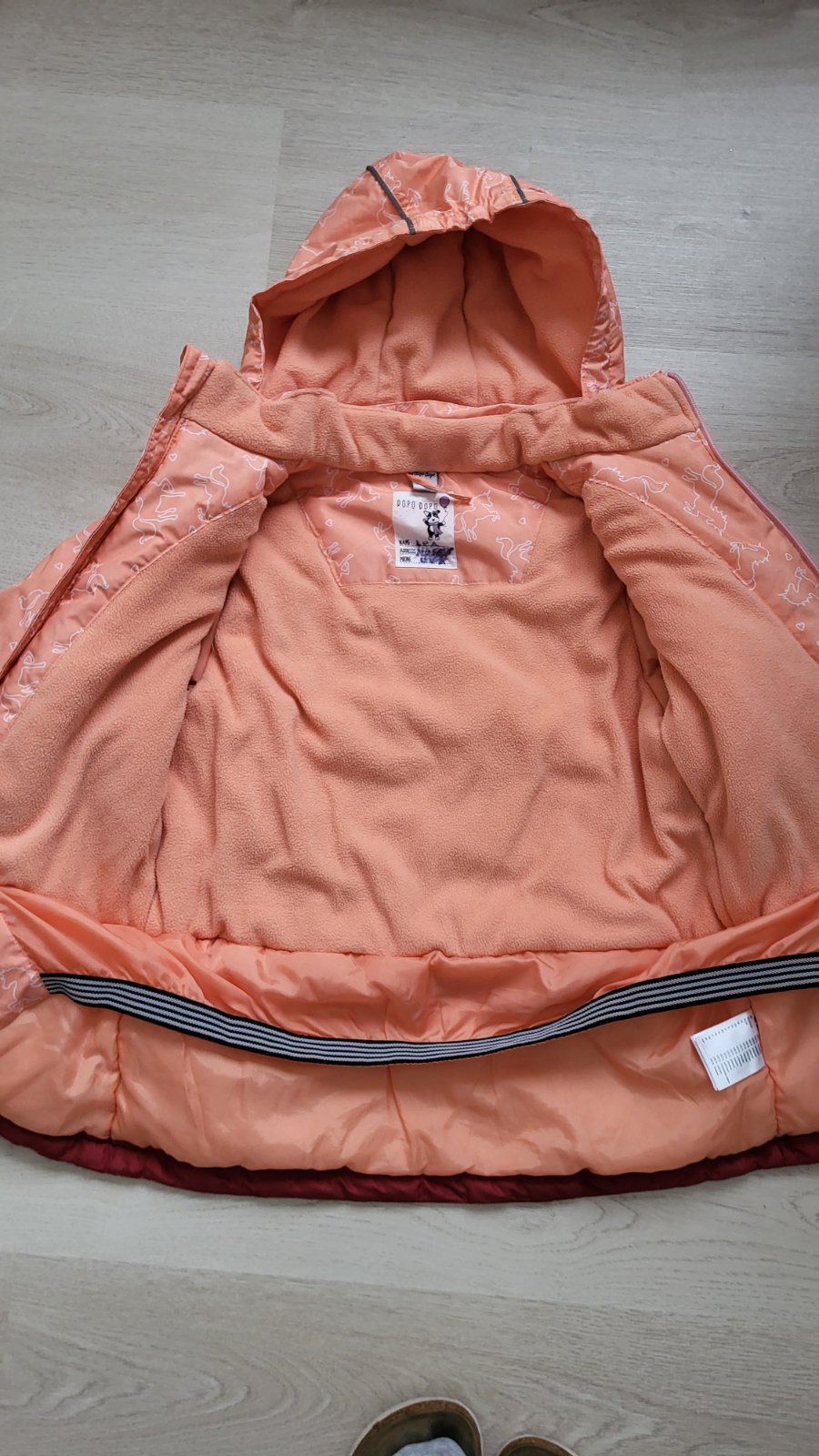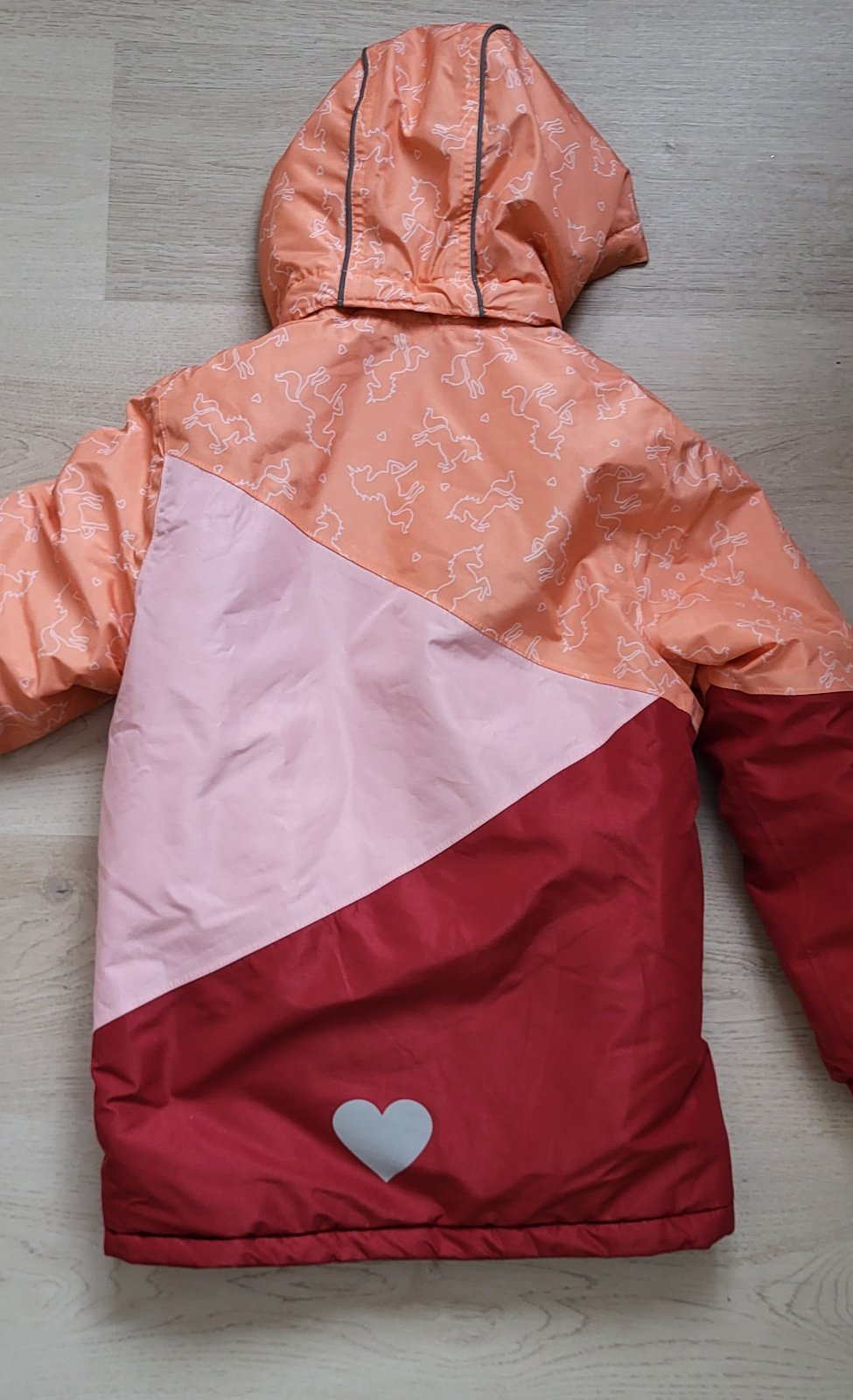 Krásna lyžiarska bunda vo veľmi dobrom stave. Jediná vada je roztrhnuté pútko na zavesenie. Reflexný prvok na chrbáte aj na kapuci. Takko Fashion.