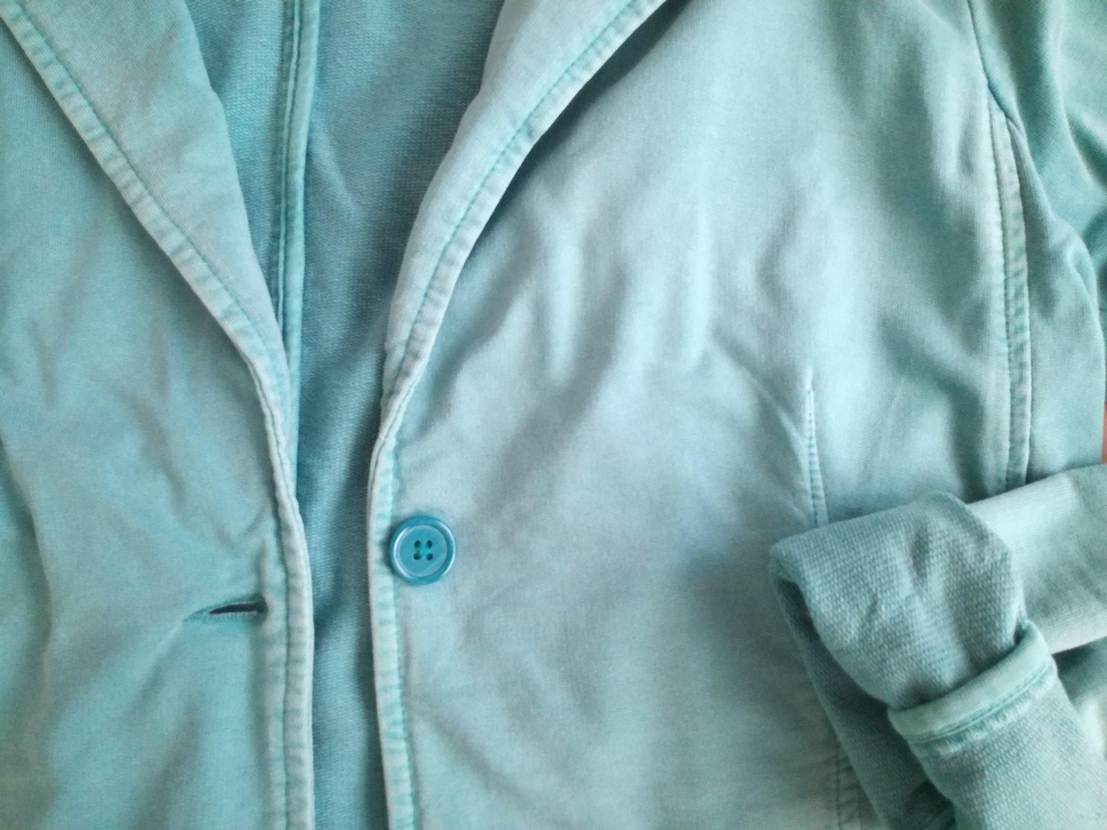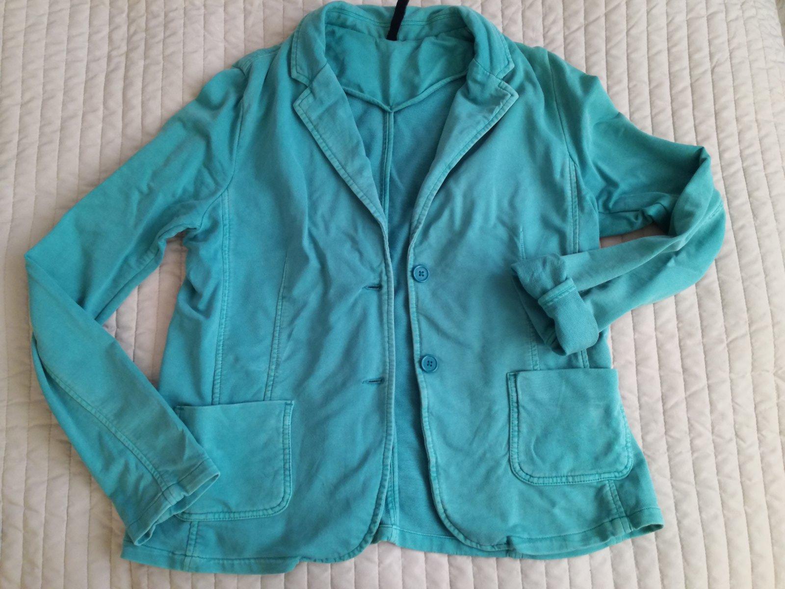 Zelené bavlnené športové sako..je to taký mikinovy materiál, stav výborný, vypraný vzhľad, šírka pod pazami 50, dĺžka 60, rukáv od krku 75cm