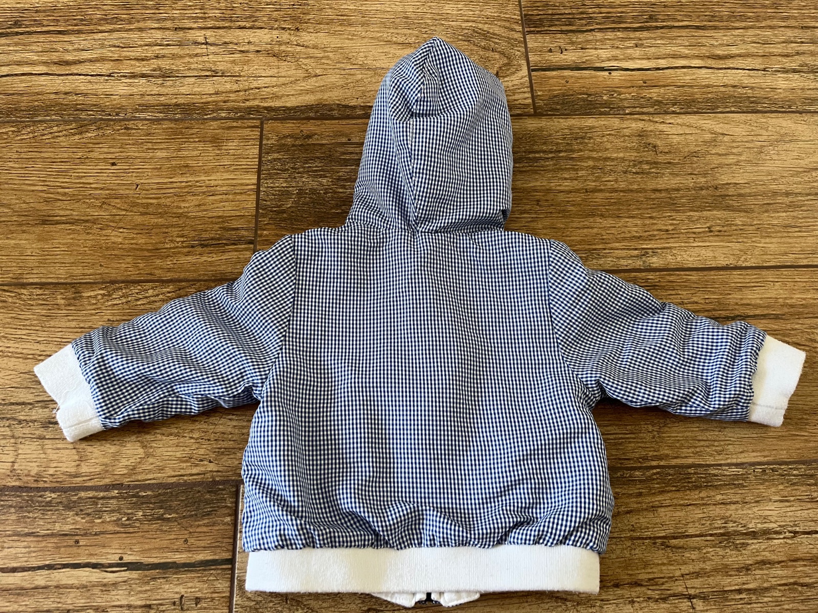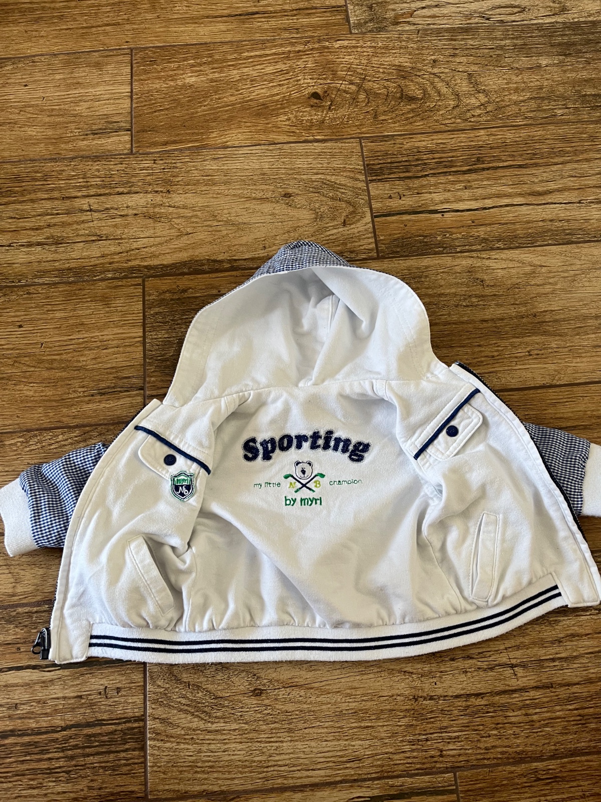 Chlapčenská prechodná bunda. Celá je podšitá fleesovou látkou. Dĺžka od ramena je 29 cm, rukáv od krku je 25 cm, šírka pod ramenami je 28 cm. Na 0-3 mesiacov. Málinko poznať nosenie, inak bez poško...