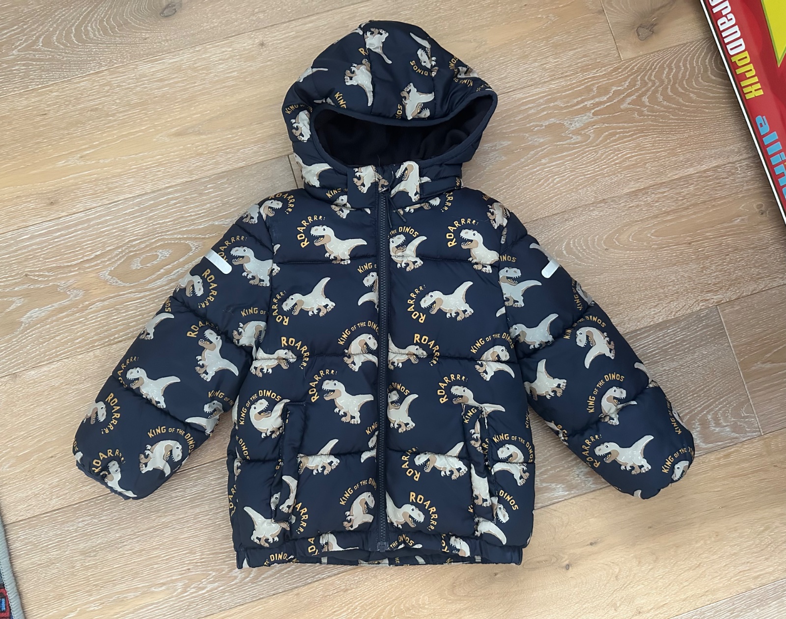 Veľmi teplá bunda, krásna farba a reflexné prvky. V tejto bunde dieťatku zima nebude. Male zatiahnutia, ale nie dierky, zatiahnutia vidieť len zblízka, keďže sa zvrchu až po spodok vetrovka fareb...