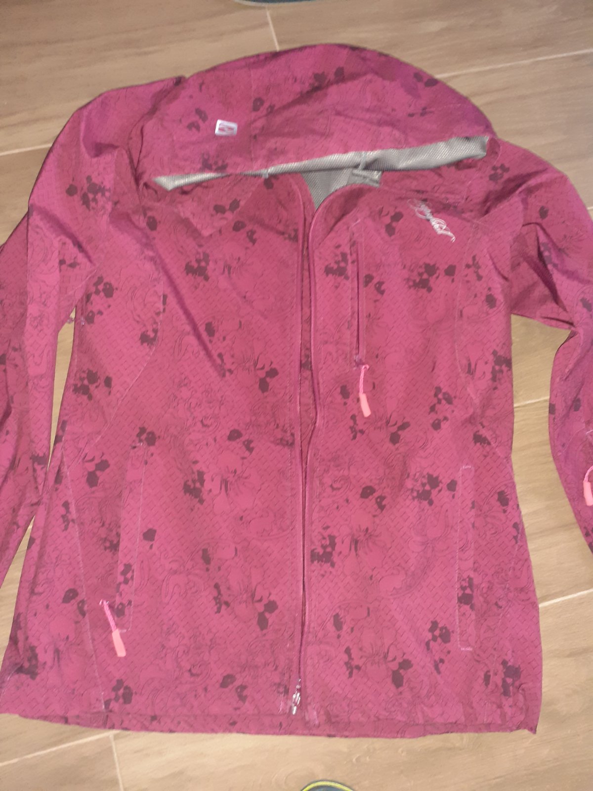 Farba je cyklamenova,bez poskodenia min.nosena.dlzka PD 68cm,ZD 70cm,rukav vnut.strana 53cm,sirka cez prsia 51x2