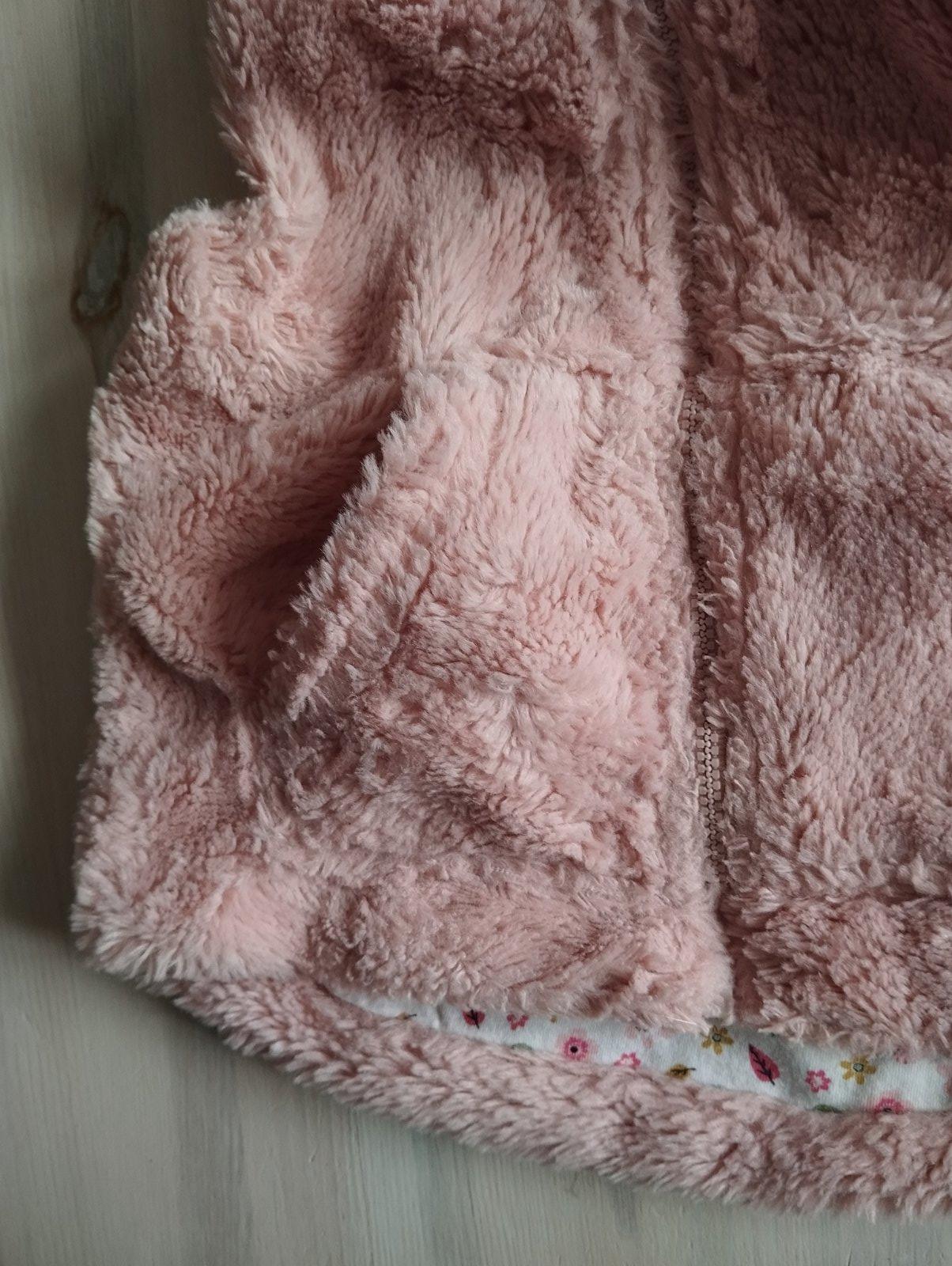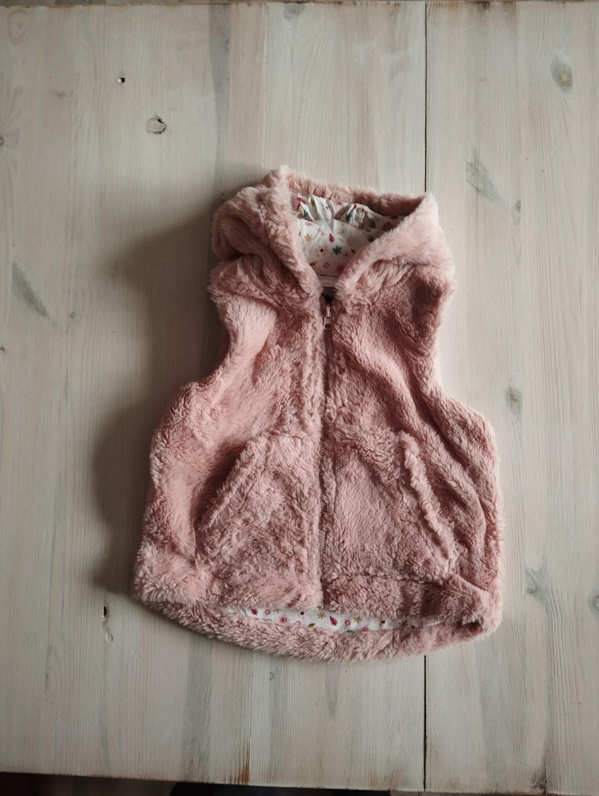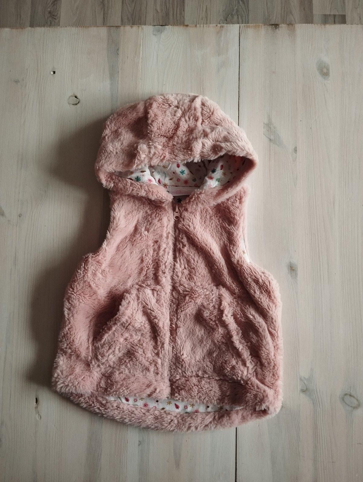 Krásna ružová zateplená vesta s kapucňou a milým vyšívaným obrázkom sovičky. Vesta je zateplená,podšitá a kapucňa je tiež zateplená. Veľkosť 12-18mesiacov, top stav,1x oblečená.V