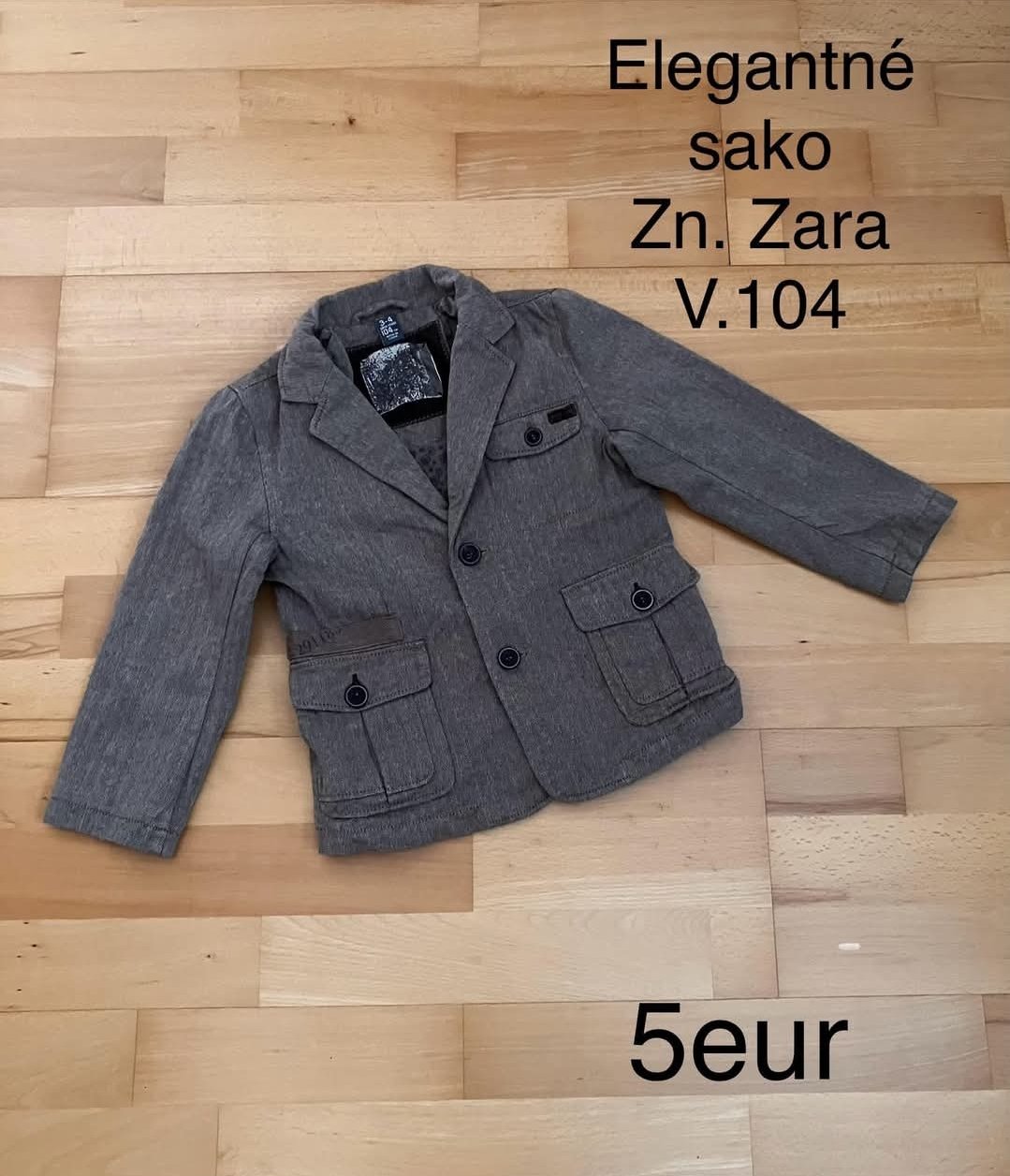 Predám krásne sako, značka ZARA, veľkosť 104, farba čierna, v super zachovalom stave bez poškodenia.