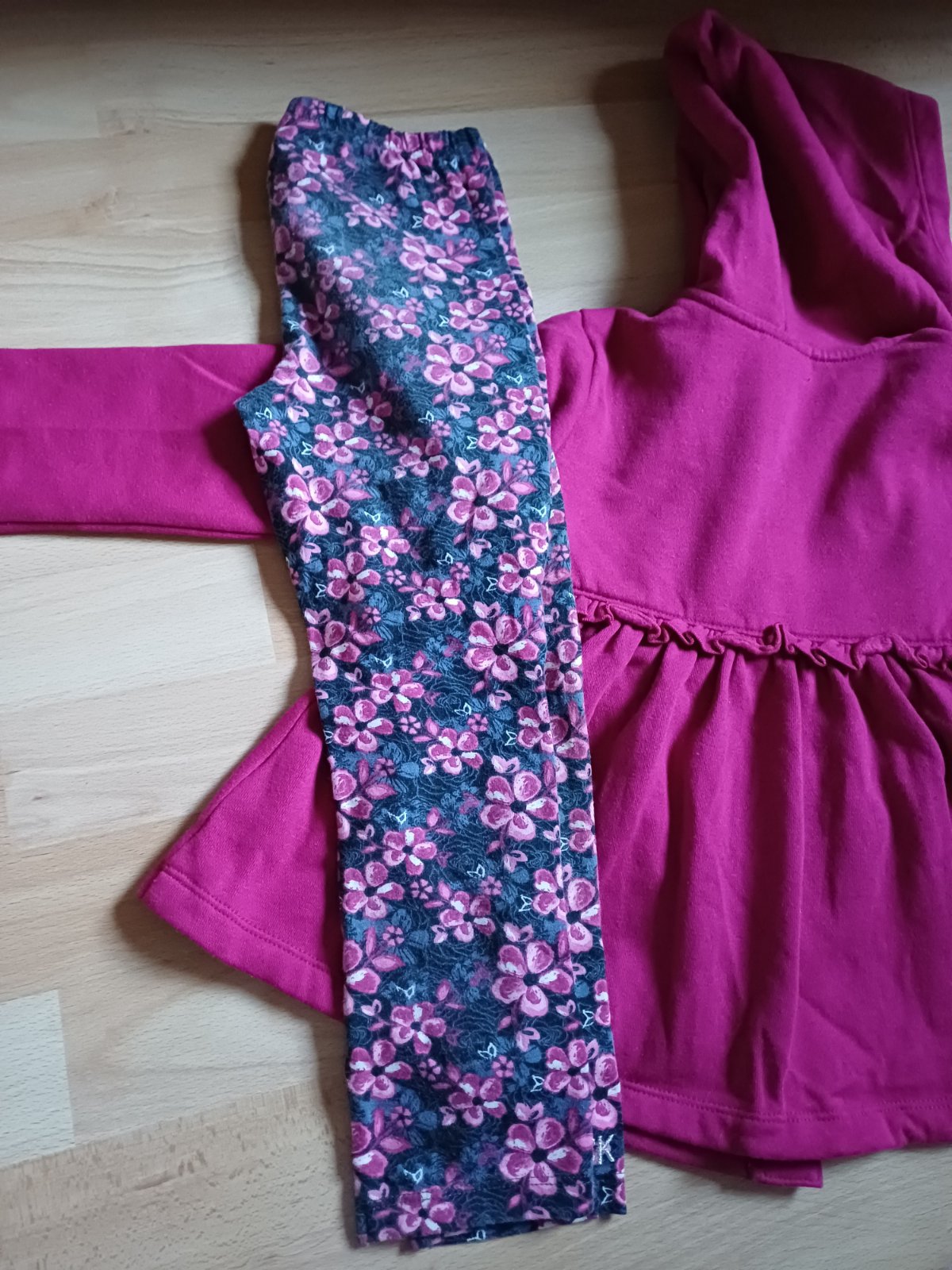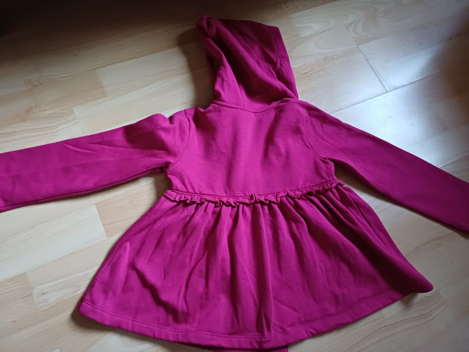 Nadherny cyklamenovy mikinovy kabatik, obleceny asi 2 max 3x, bez poskodenia. Pridam gratis leginy, na kolenach vidno nosenie