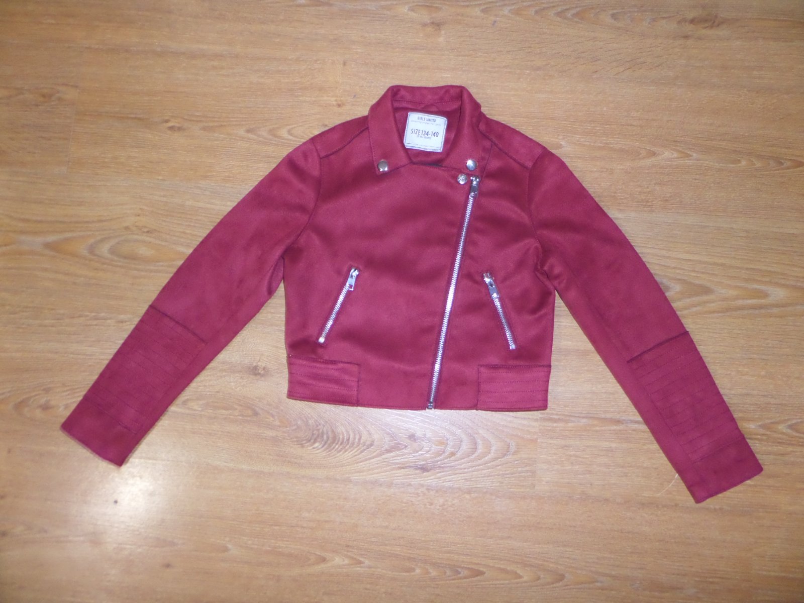 Prechodná bunda, veľ.140. Má malú trhlinku (detail foto), ktorú ľahko zamaskujete nášivkou.Dĺžka od krku 50 cm, rukáv od krku 62cm. Šírka medzi pazuchami 39 cm. Cena je s poštovným.