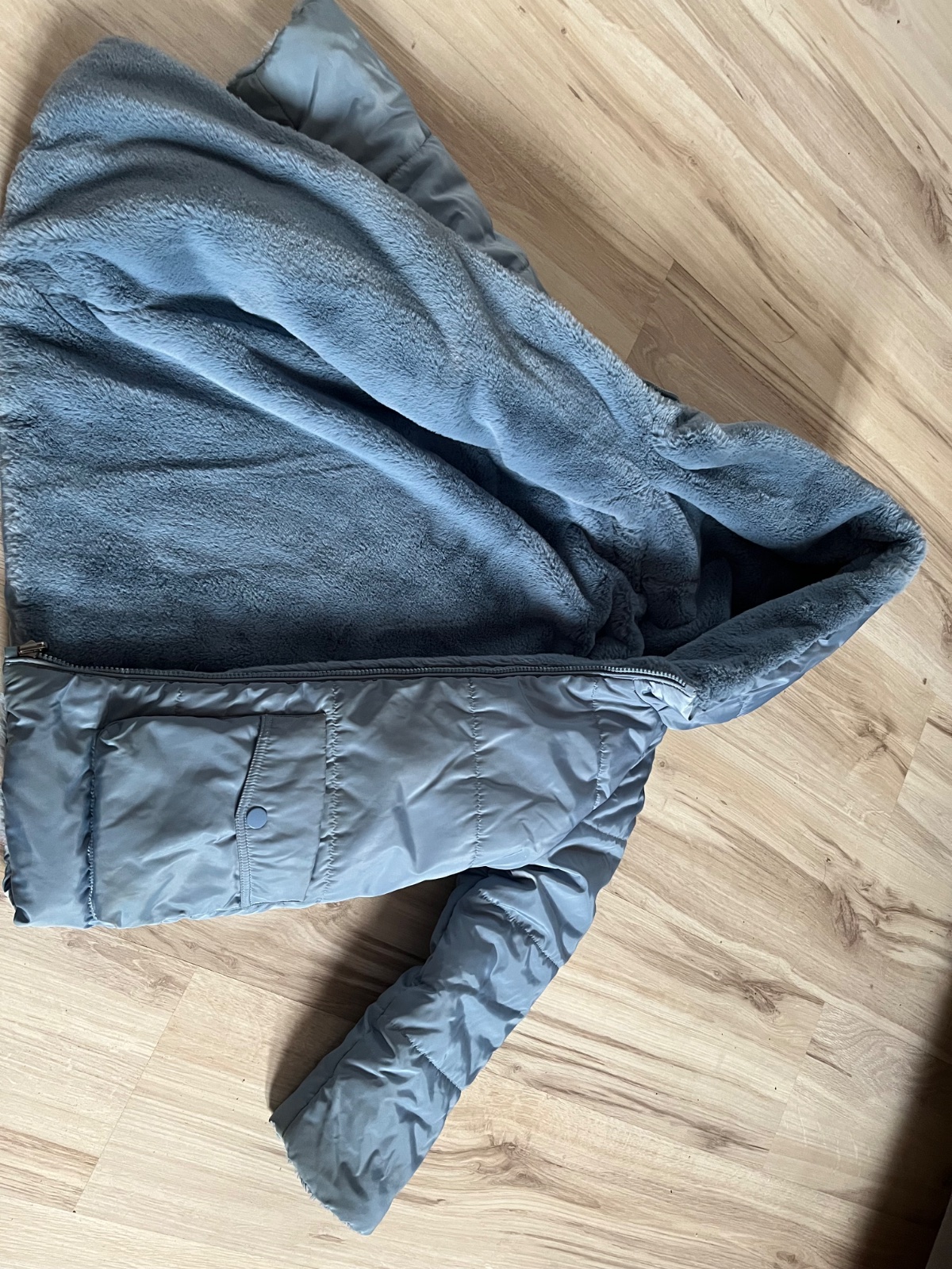 Predávam nasu krásnu bundicku, je obojstranná, da sa nosit aj ako kuzustek, farba je skor metalicky modrá, takze kľudne aj pre chlapca, kupovaná ako dievčenská. Nema žiadne poškodenia.