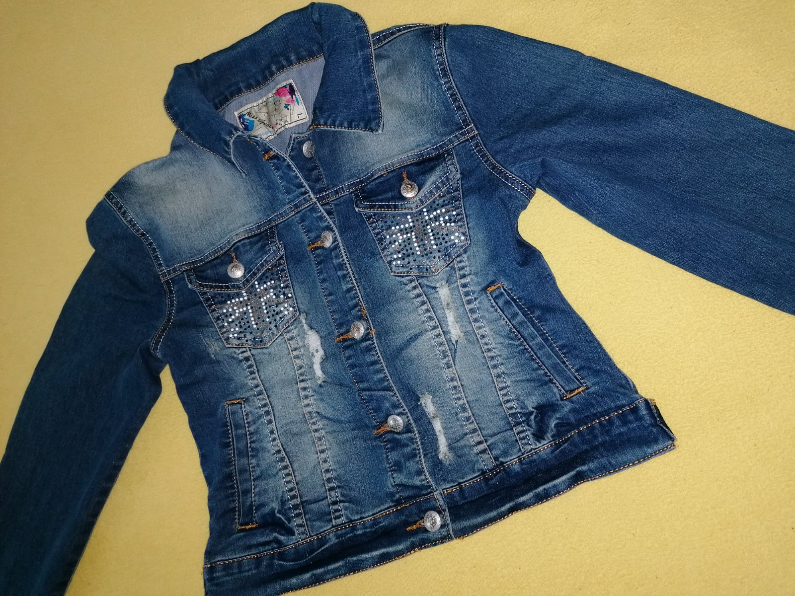 Predám peknú riflovú bundu zn. FORTUNATE veľ. L s kapucňou. Bunda má dierku viď foto ale takú som ju bohužiaľ kúpila. Cena 5 €.