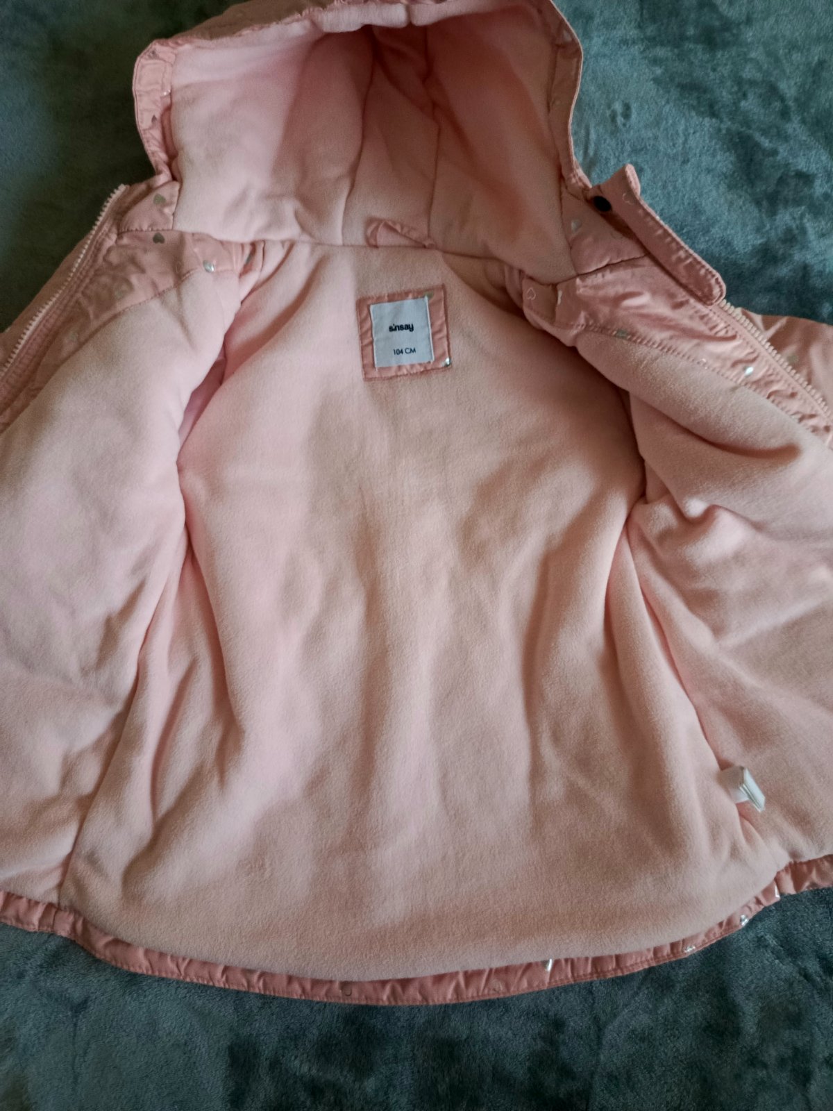 Posúvame nenosenú bundičku, ktorá je skôr pre bacuľky. Dcérke nesedela, ale zabudli sme ju včas vrátiť. Na prednej strane je narušenie tej metalickej farby, preto je cena prispôsobená.