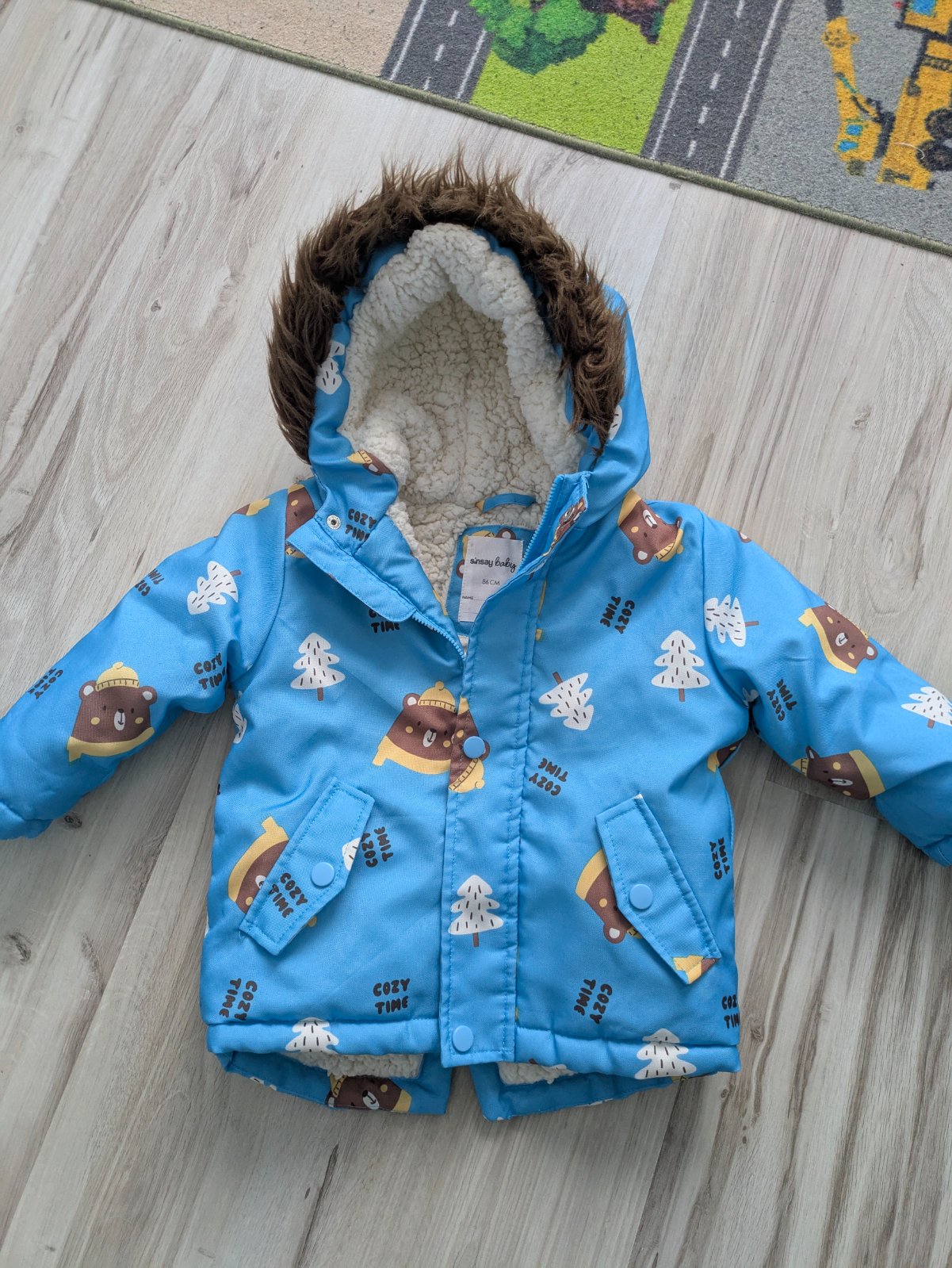 Zimná vetrovka, veľkosť 86. Minimálne nosená, ako nová. Kupovaná za 18€, predám za 5€ + pošta ale ideálne osobný odber Košice - Kavečany.