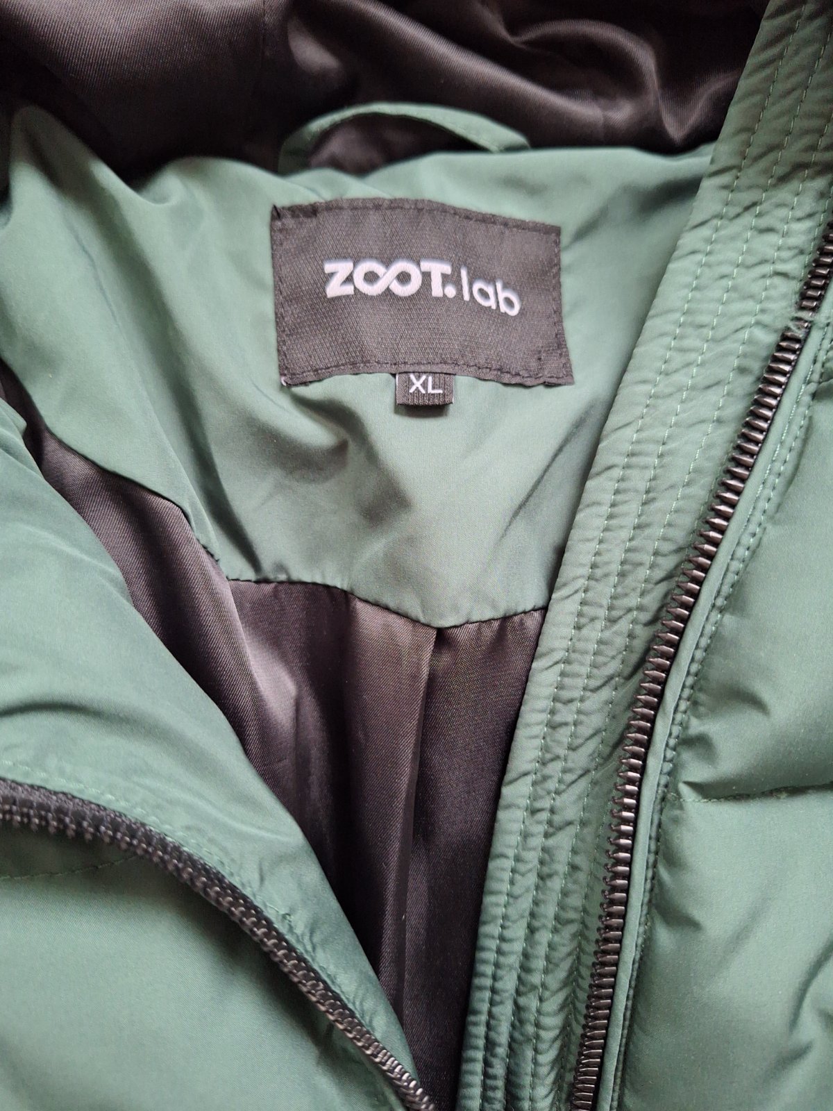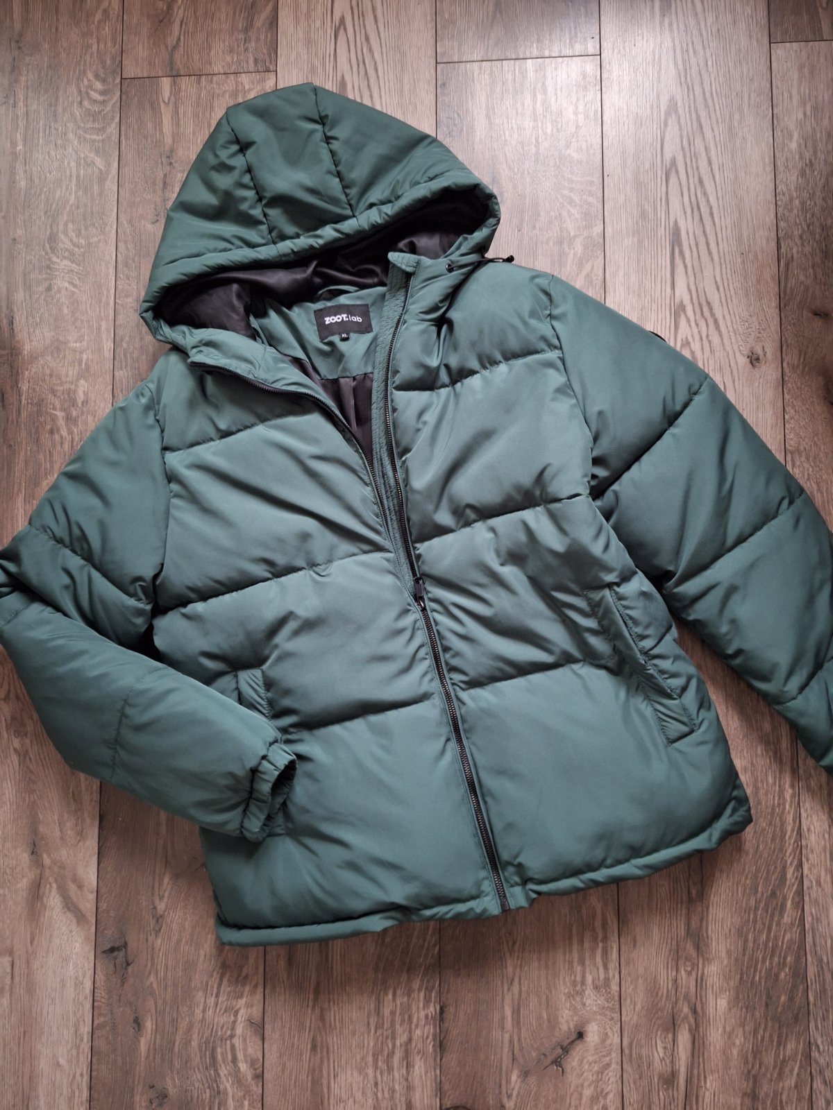 1x oblecena bunda vo vojenskej zelenej farbe, kombinovaná s oranžovou. Je veľmi tepla, ale nie je ťažká. Je detailne prepracovaná. Vo vnútri je šnúrka na stiahnutie, vrecko a na rukávoch a spodku b...