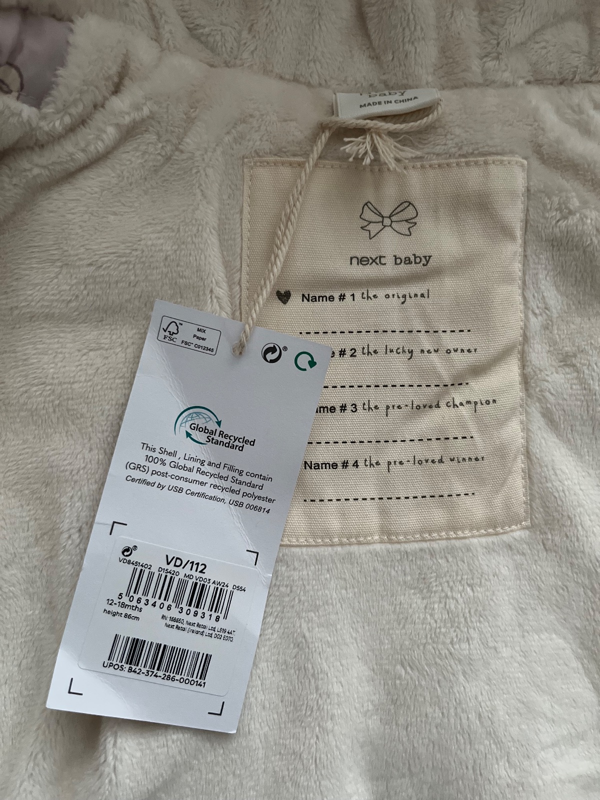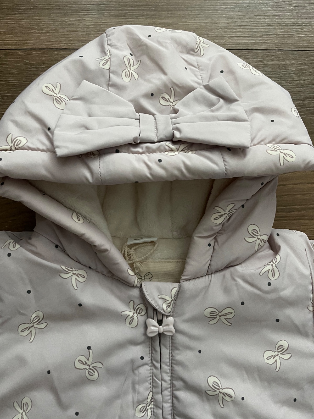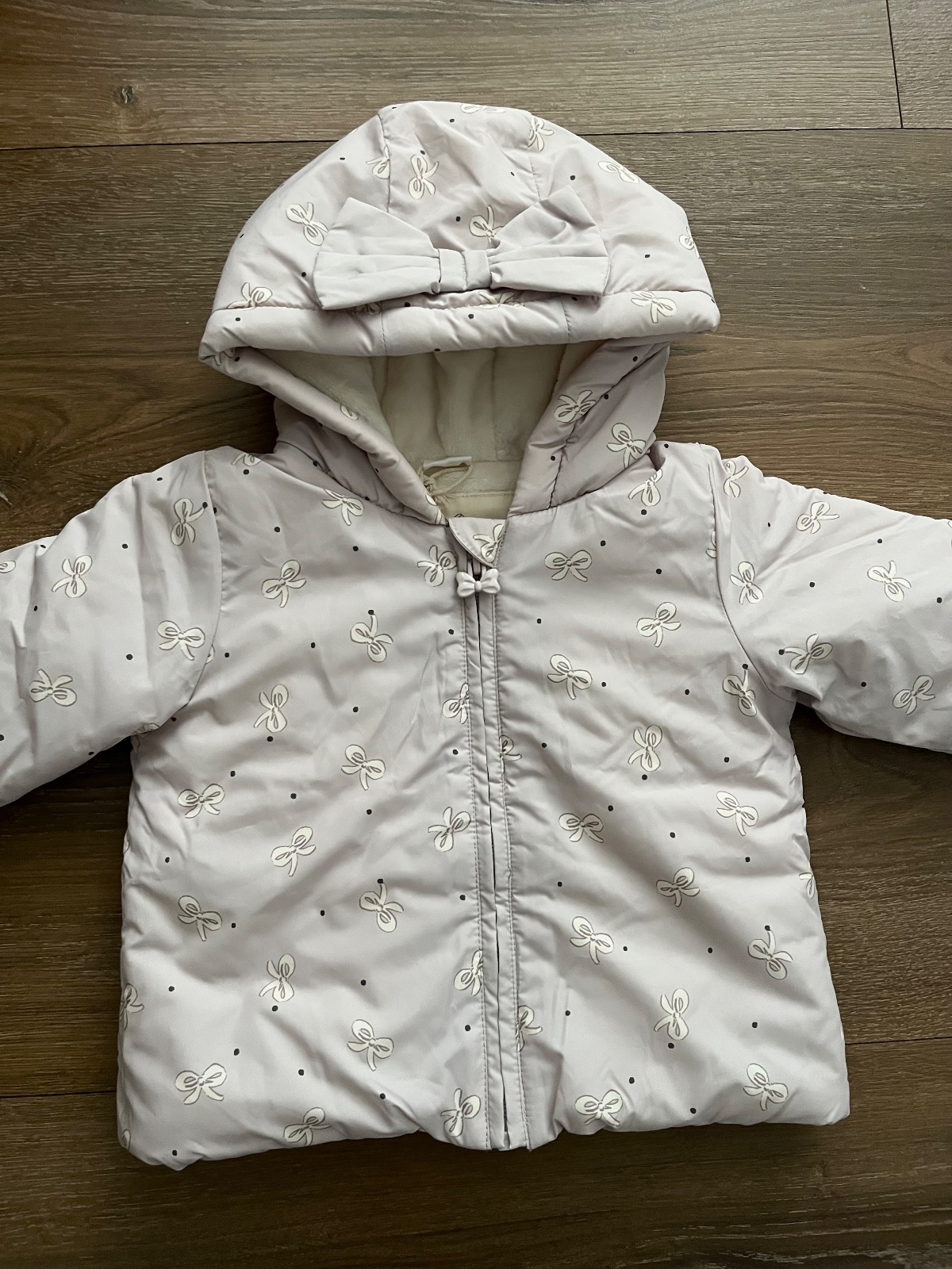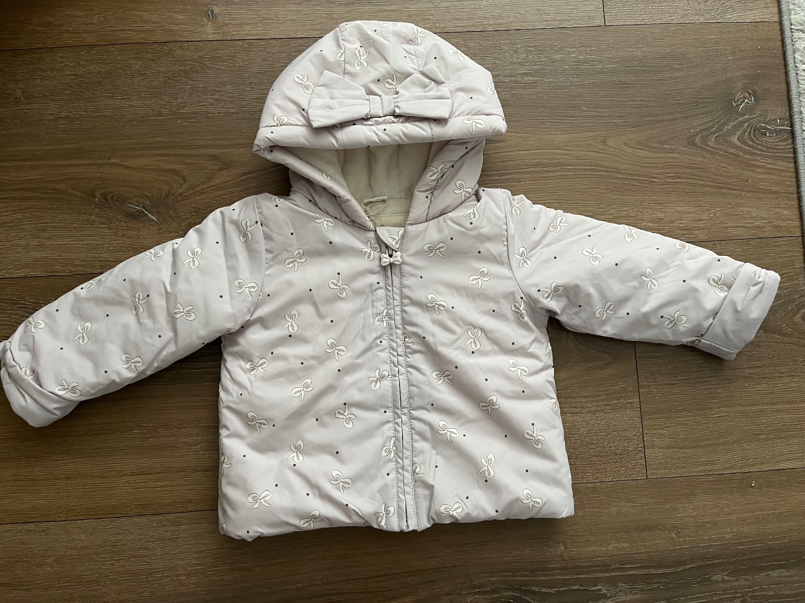 Nova zimna bunda s visackou, zn Next, vel 86 na 12-18 mes, farba je slabunko fialova s maslickami
