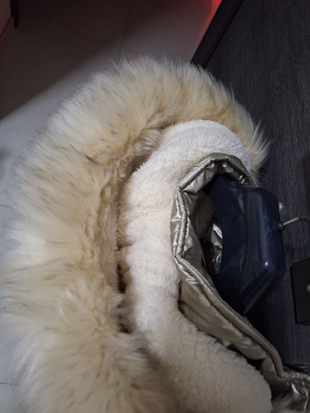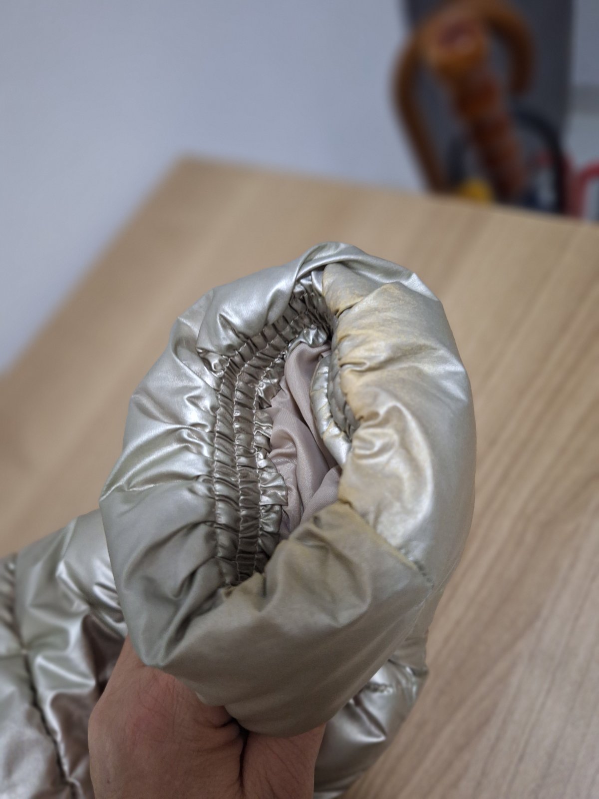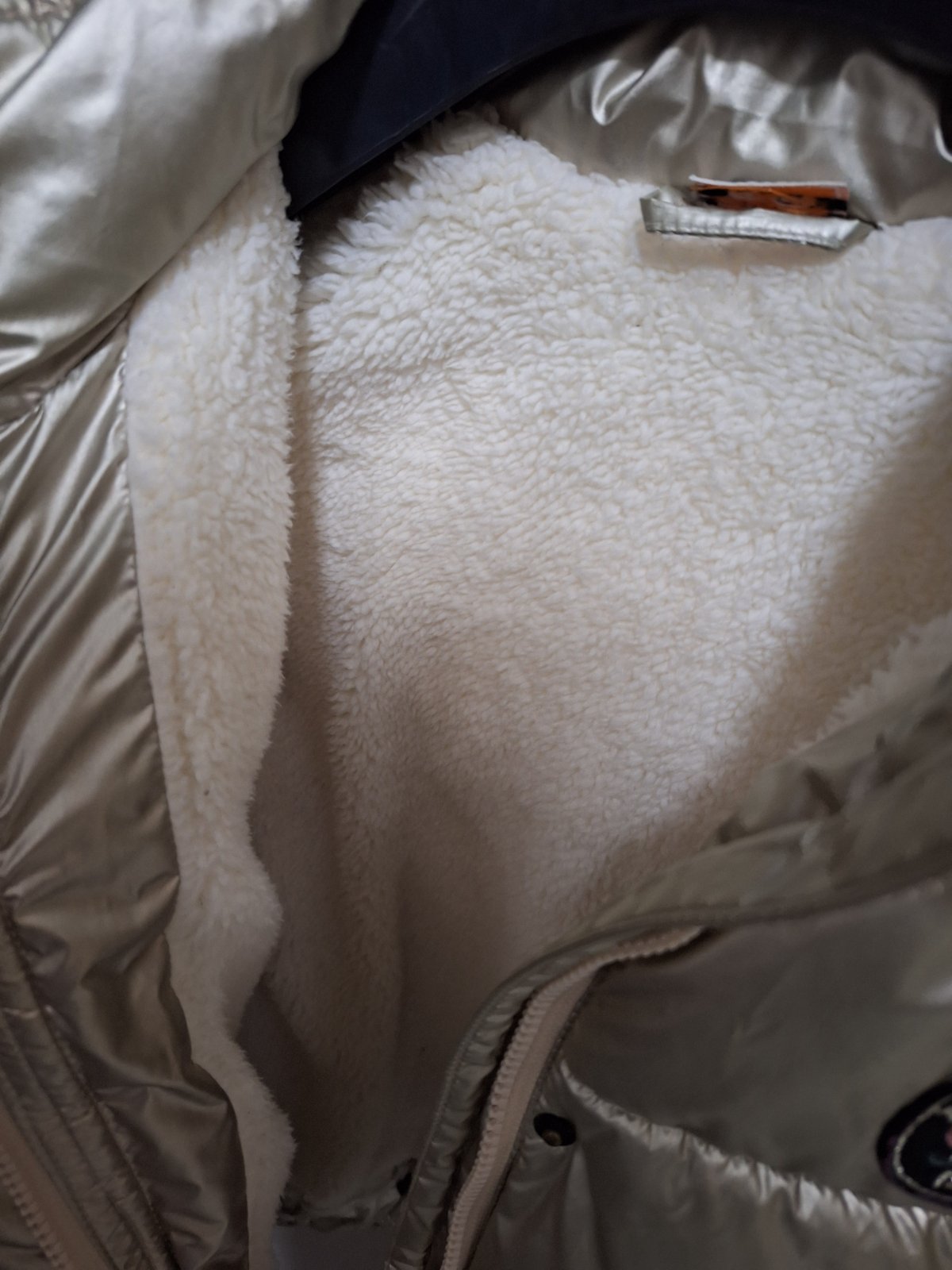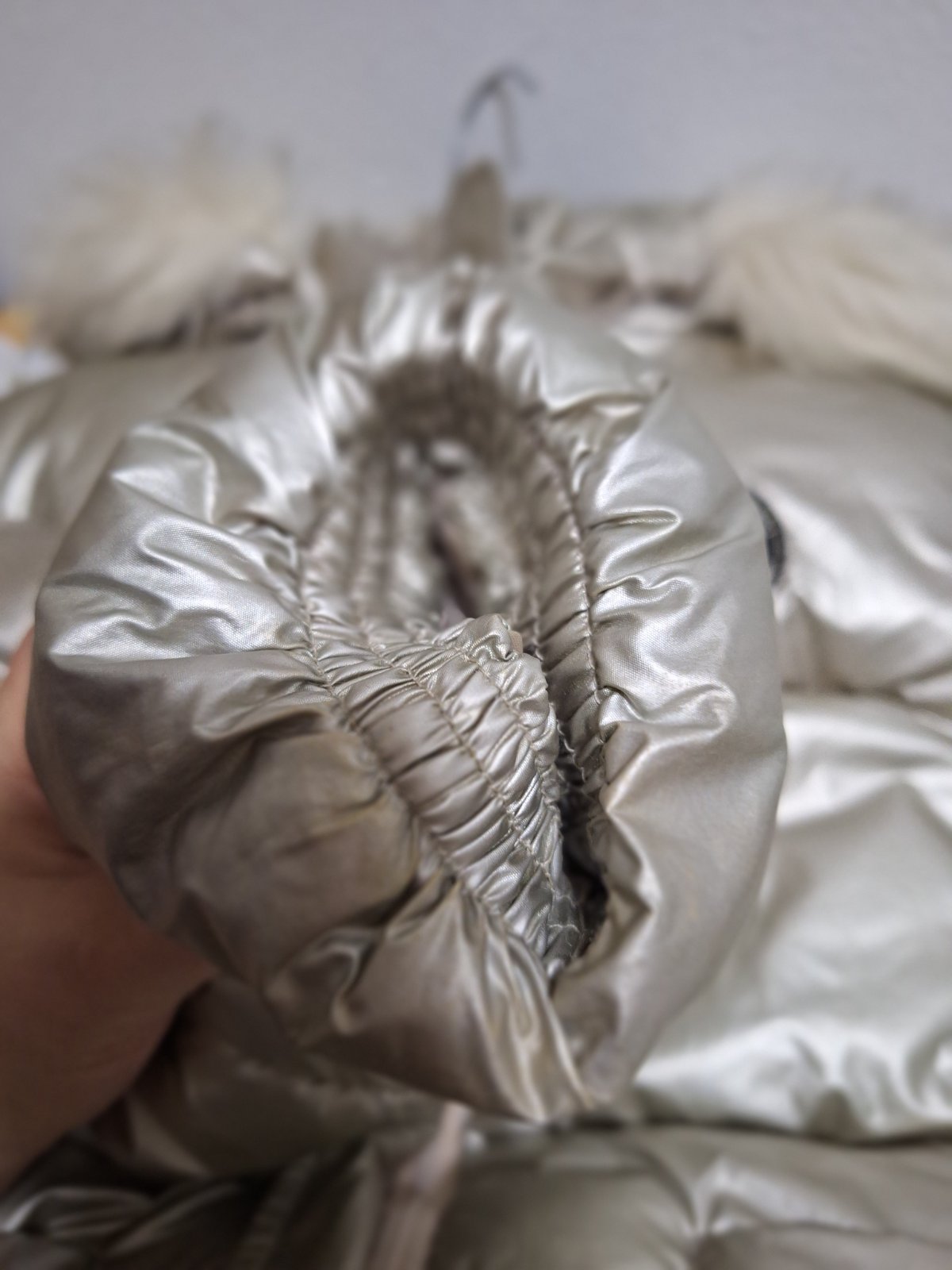 Krásna biela bundička s metalickými detailami,sú také tlmenejšie farby,nie také ligotavé ako na foto.Je naozaj pekná a v top stave.