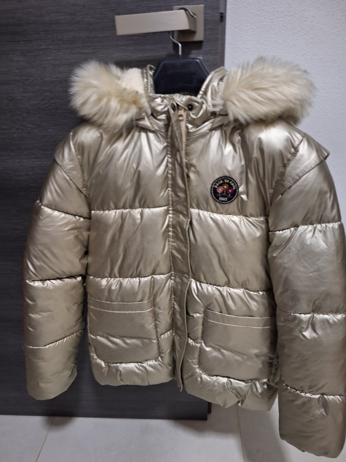 Predam krasnu,teplu bundu zlatej fatby s kapucnou a na nej odopinatelna kozusinka.je to francuzska znacka tape a l'oeil