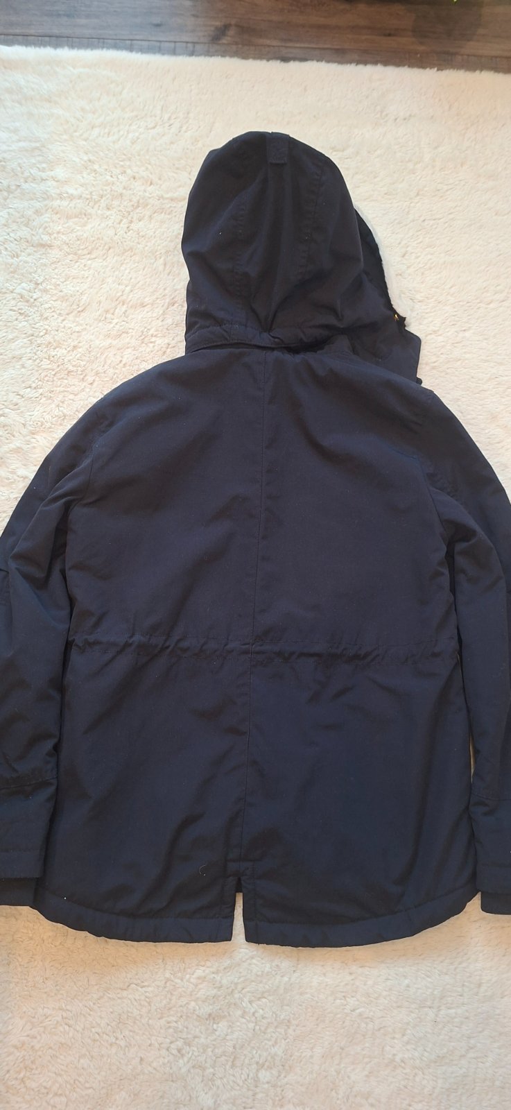 Pekne tvaruje. Kapucňu som nenašla. Patenty na rukávoch vybledli...môžte si ich podhnúť a schovať pod rukáv. Cena zohľadnená.