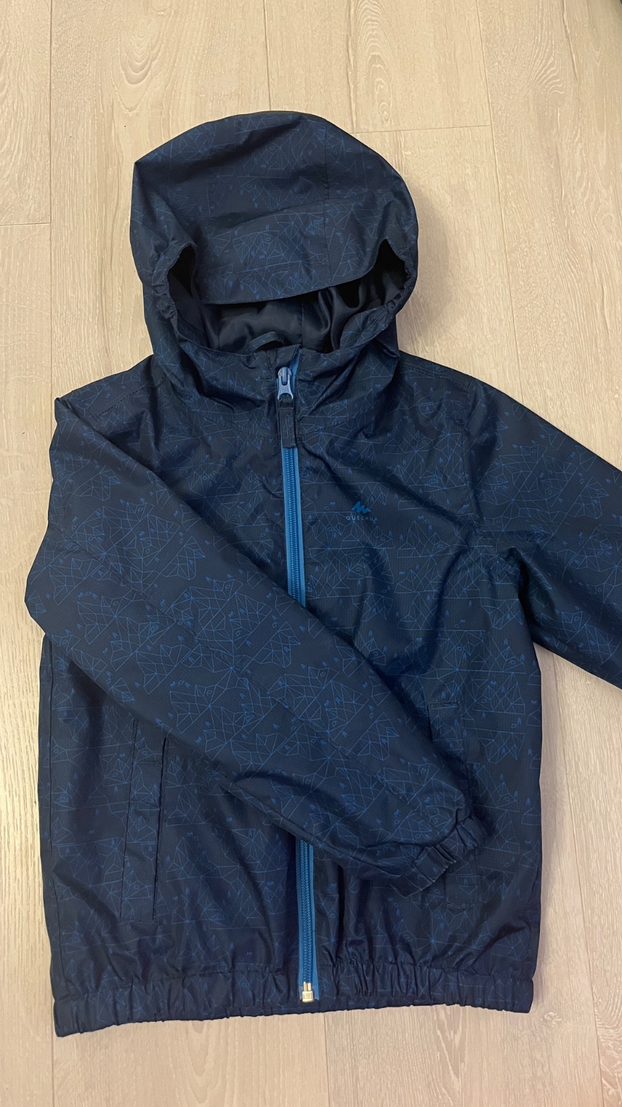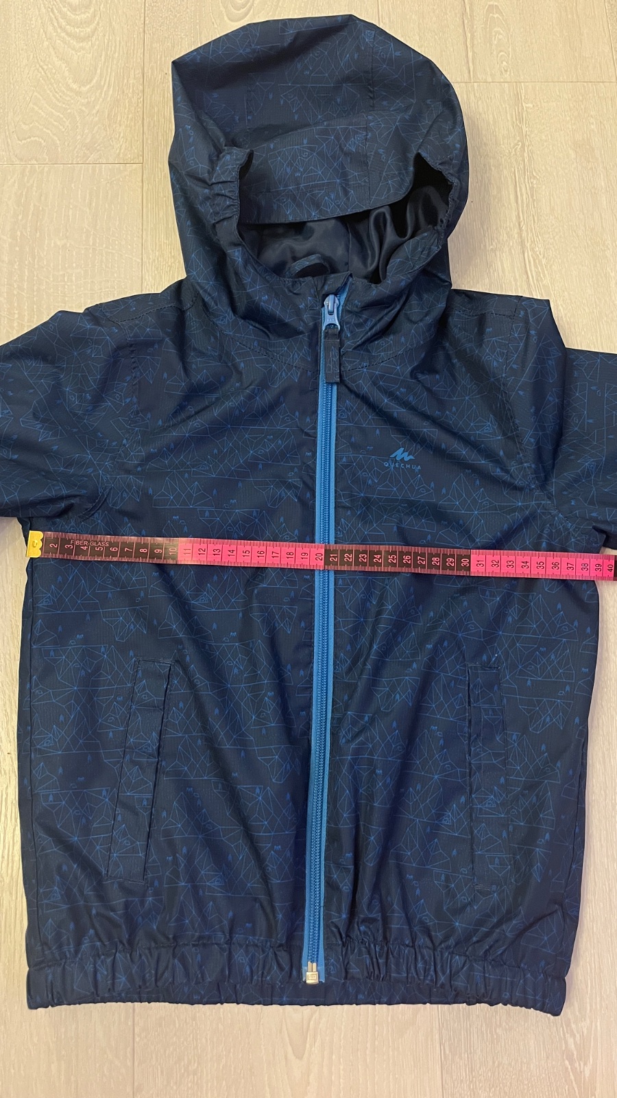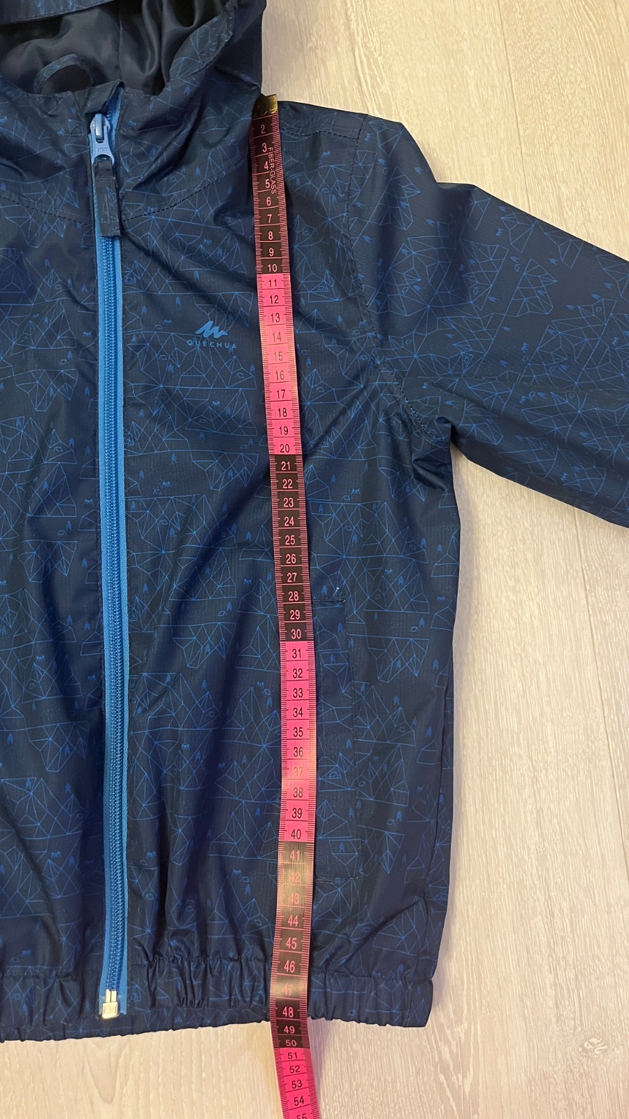Posúvam bundu po synovi, kupovaná v Decathlone, zn.Quechua, veľ.5-6r/113-122cm. Vetruodolná, nepodšitá, zvnútra má len sieťku. Vo veľmi dobrom nosenom stave, mierne známky nosenia len na gumičkách rukávov - odfotené. Rozmery na foto.