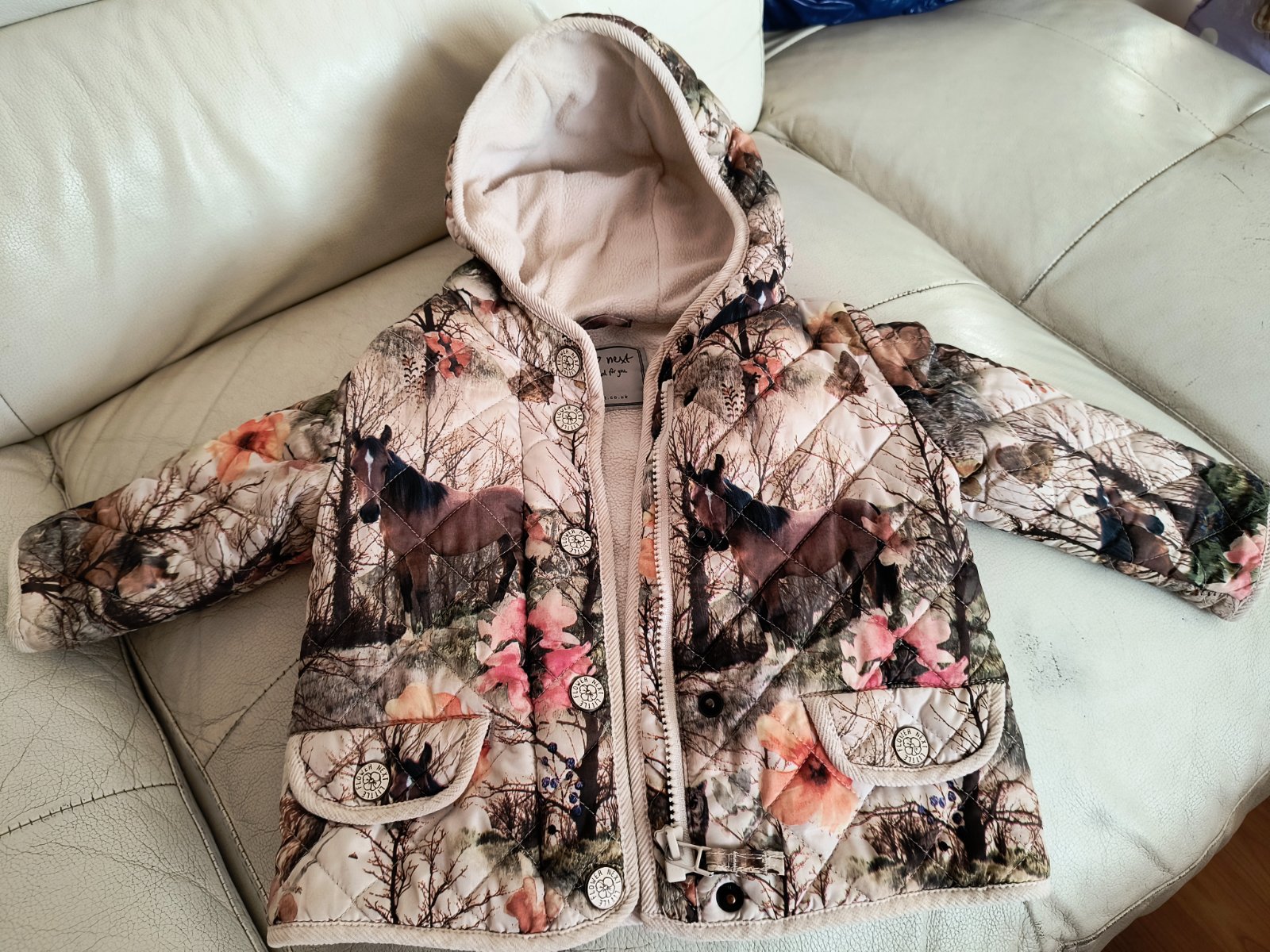 Top stav. Prekrásna prechodná bunda s koníkmi. S kapucňou, vreckami, zapínanie na zips a gombíky. Nádherná. Nosili sme malo.