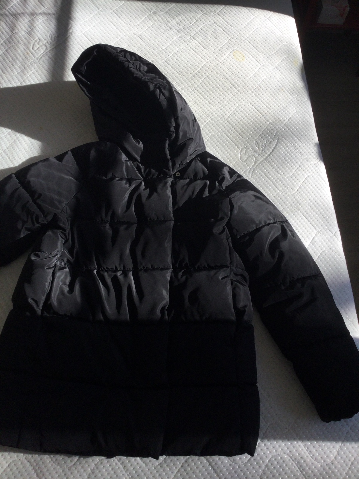 Veľmi pekná kvalitná , teplá zimná bunda. Pár krát oblečená, bez poškodenia ako nová. Má zaujímavý odlesk. Rukávy a spodná časť bundy ukončená stiahnutou gumou, zadržiava teplo. Vpredu 2 veľké vrec...