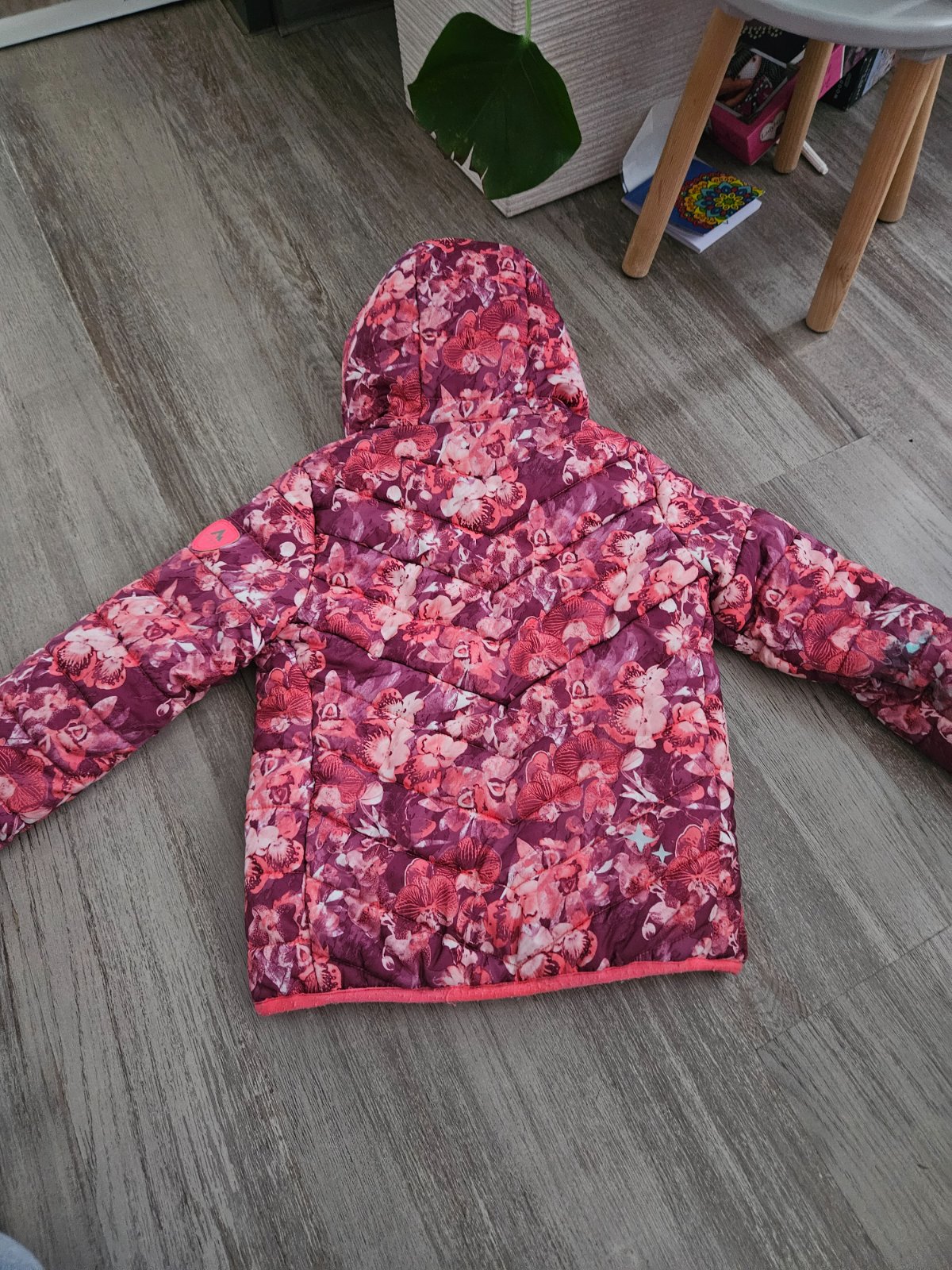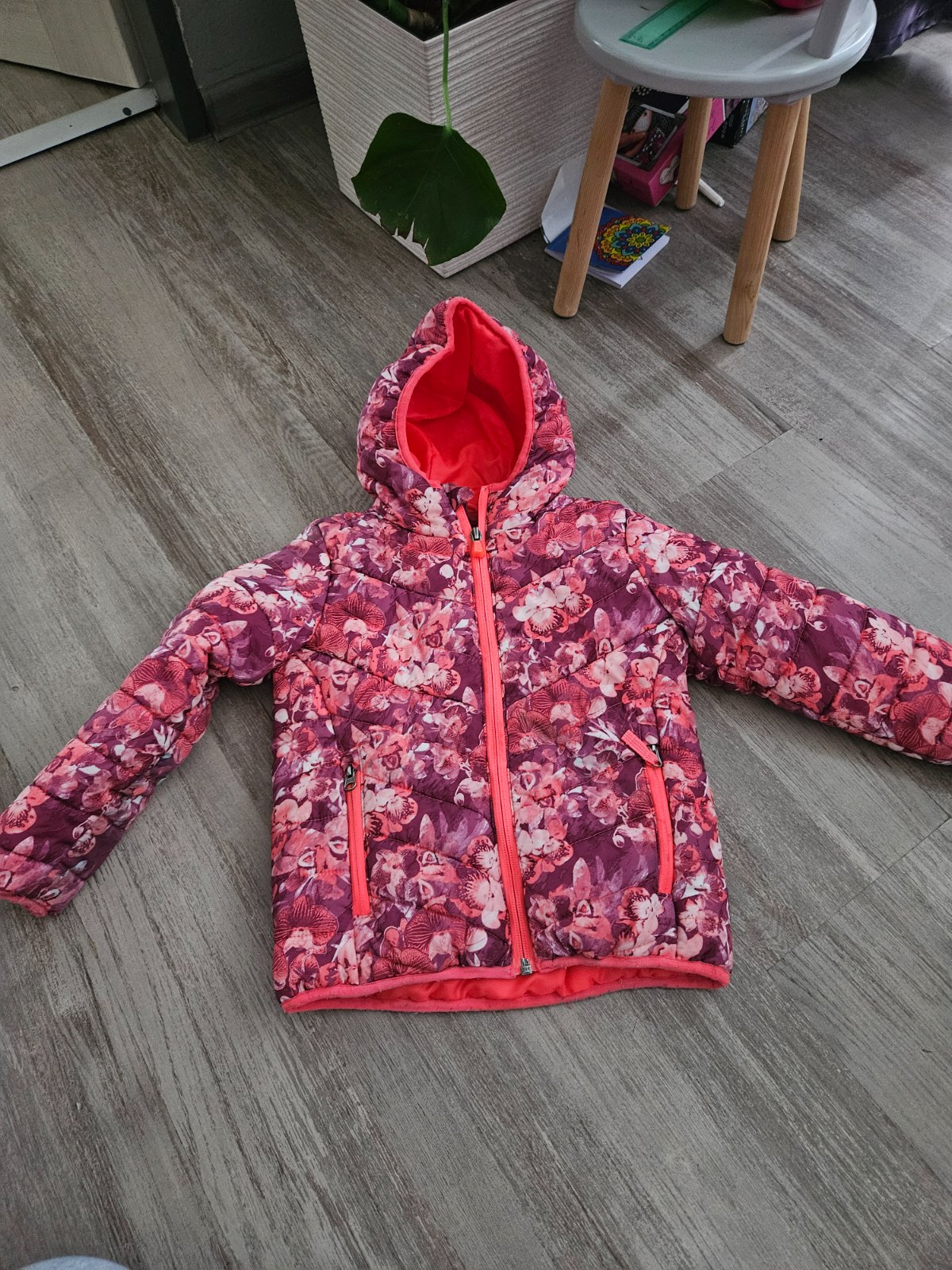 Vetrovka pre dievca skoro nova neposkodena veľmi kvalitná celková dĺžka od krku 49 cm rukáv od krku 45 cm ukončený gumičkou vrecká na zips nepoškodené kapucna dá sa schovať do limca nepremokava