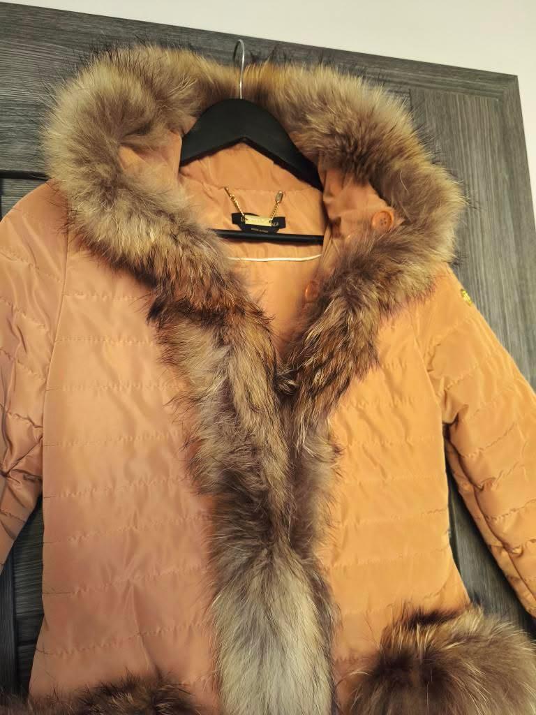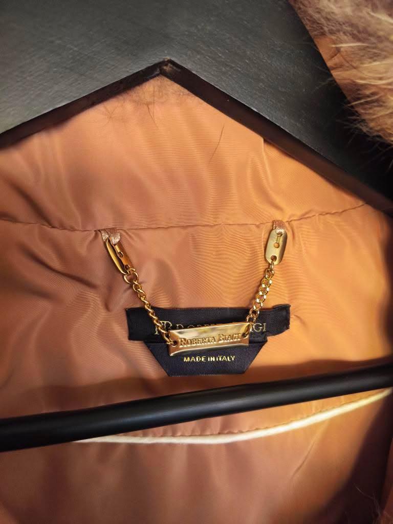 Luxusna bunda Roberta Biagi lemovana pravou kozusinkou z lisky. Velkost XS sedi zapina sa na gombimy. Oblecena len 1x uplne v top stave ako nova (jeden gombik je mierne povoleny staci len lepsie prisit). Farba je pekna bezovo-marhulova. Povodna cena vysoka.