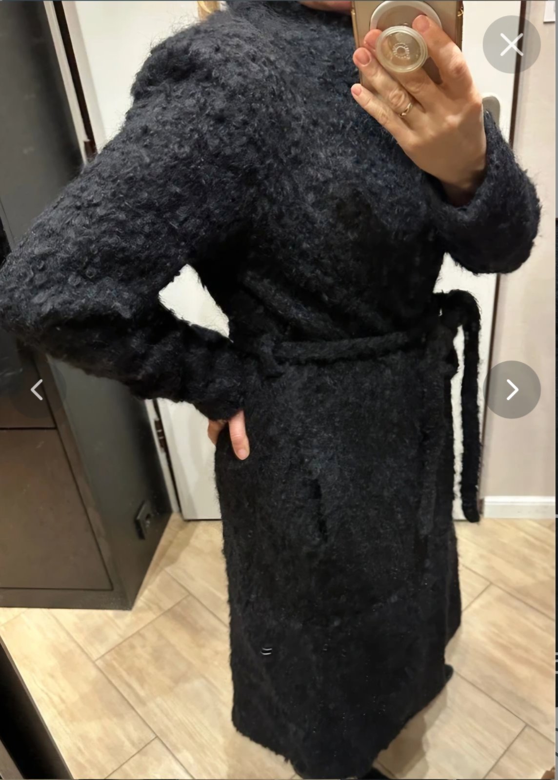 Nádherný vlnený boukle kabát, zo špecialne upravenej kvalitnej vlny manteco - talianske spracovanie. Velkosť M - 38. Hoci na štítku je uvedené o číslo väčšie, ale je to skutočne M-ko. Nádherný top stav, ako nový, mne je žial malý. Na foto niesom ja. Vysoký podiel vlny až 82%. Je ťažké ho už zohnať.