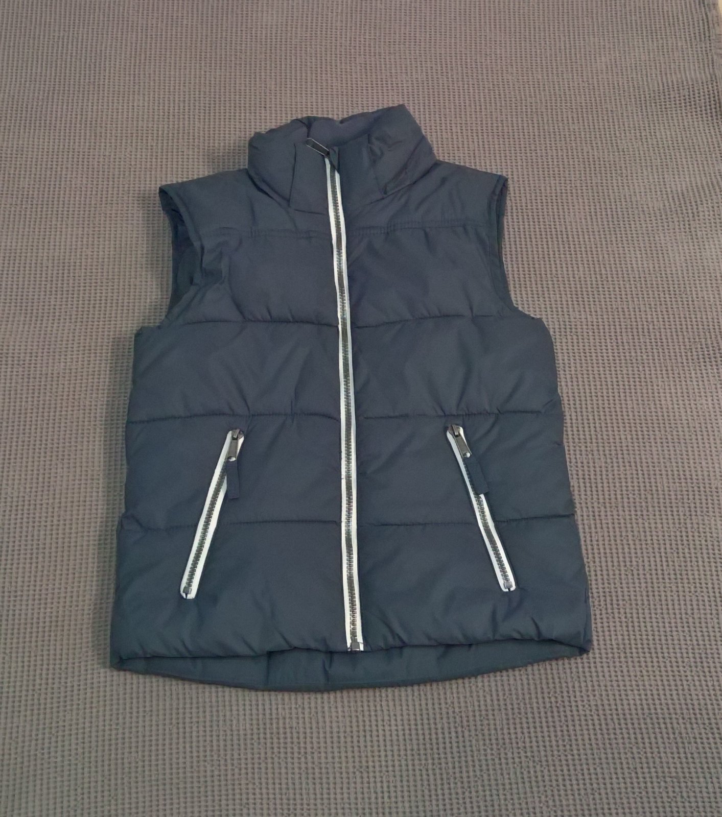Zateplená vesta v top stave, dvojčíslo 134/140... šírka pod paz. 42cm...dĺžka meraná od ramienka nadol PD 53,5cm - ZD 55cm. K veste je aj kapuca.
