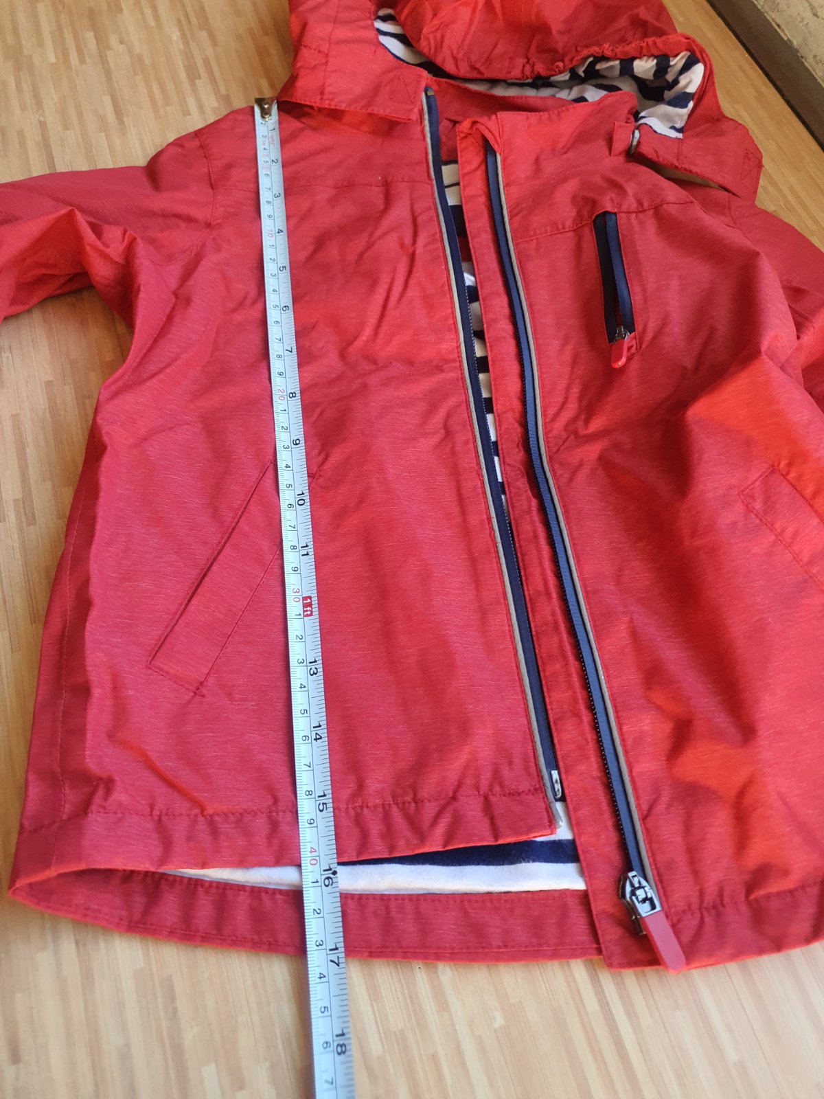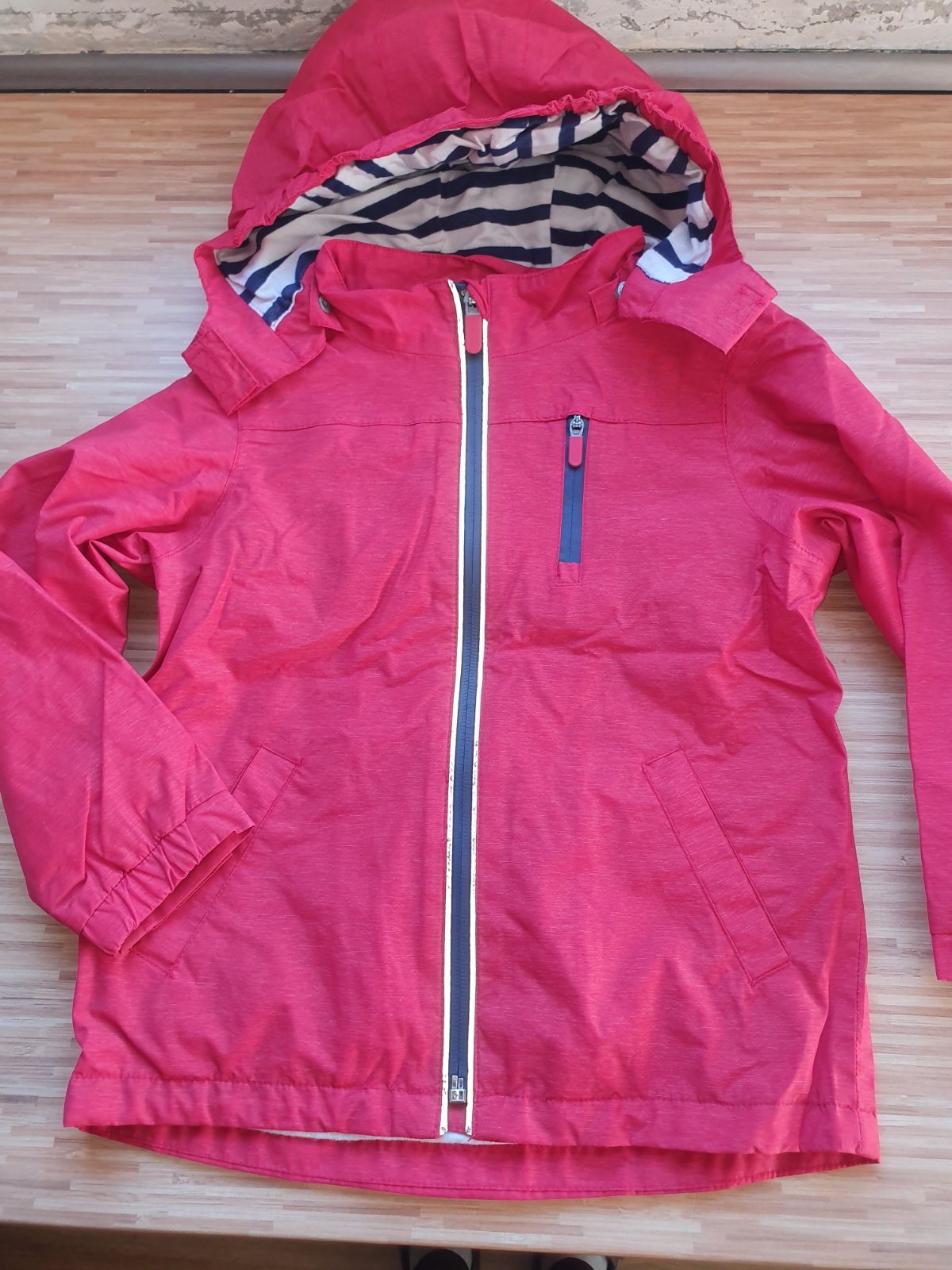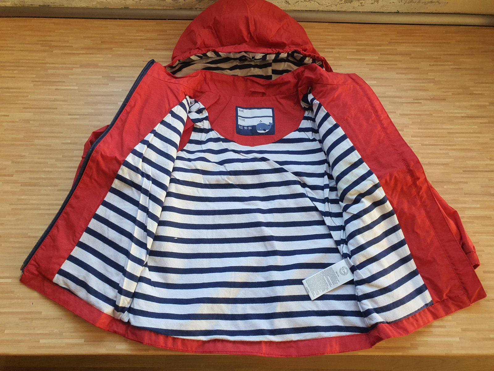Uzasna bundicka na uprsane dni, zipsy pogumovane, reflexne prvky, odnimatelna kapucka, podsita trickovinou v namornickom style, vo vybornom stave, mame k nej aj flisove gatuse + 3eura. A rovnaku bundu pre vacsieho surodenca alebo v rovnakej velkosti iny motiv pre sestricku.