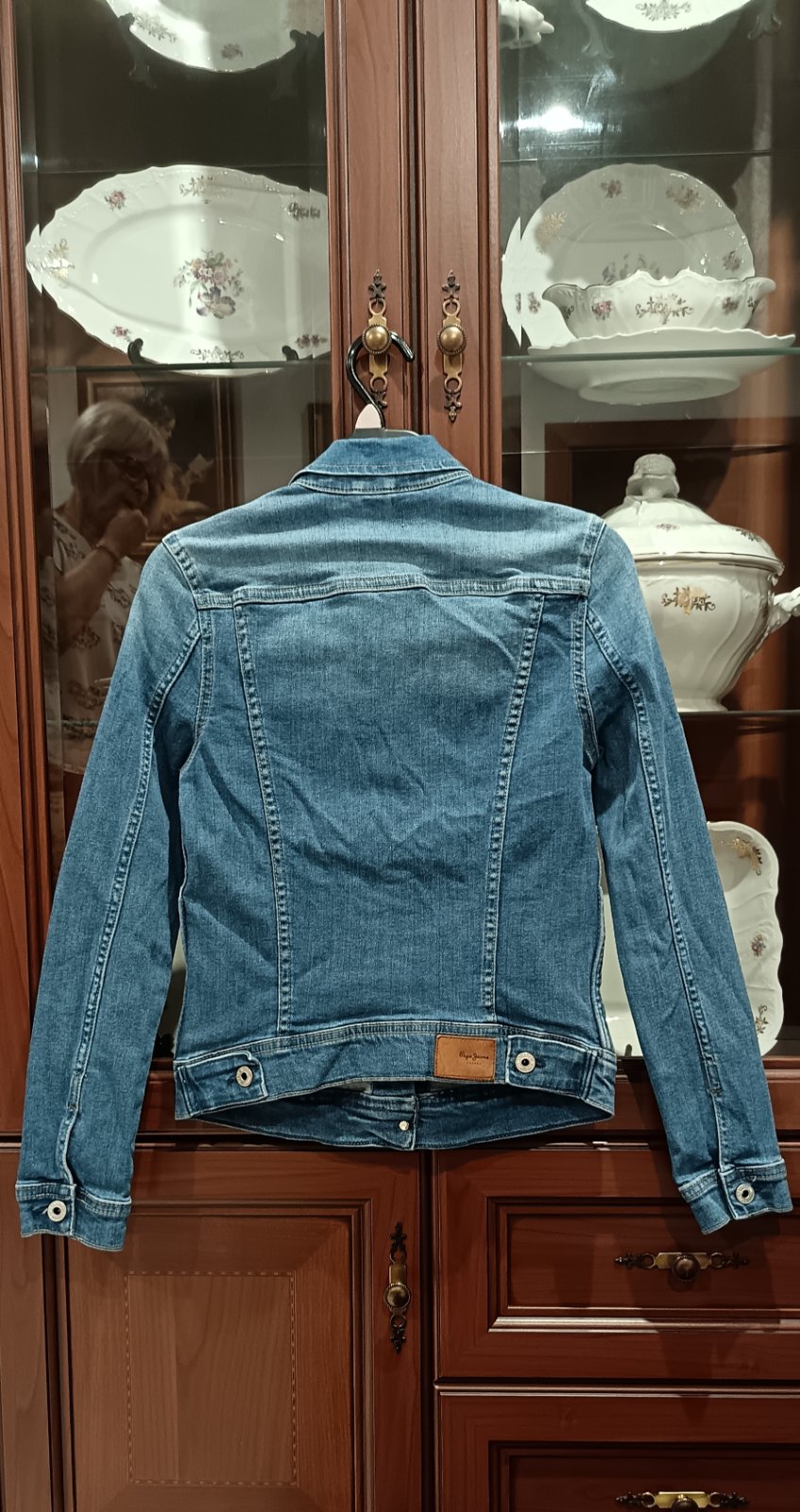 Suprová elastická riflová bunda, pekne tvarovaná, jemne predĺžená - nie do pása, bočné vrecká, 98% bavlna, 2% elastan, vhodná aj ako dámske XS, originál, super stav.