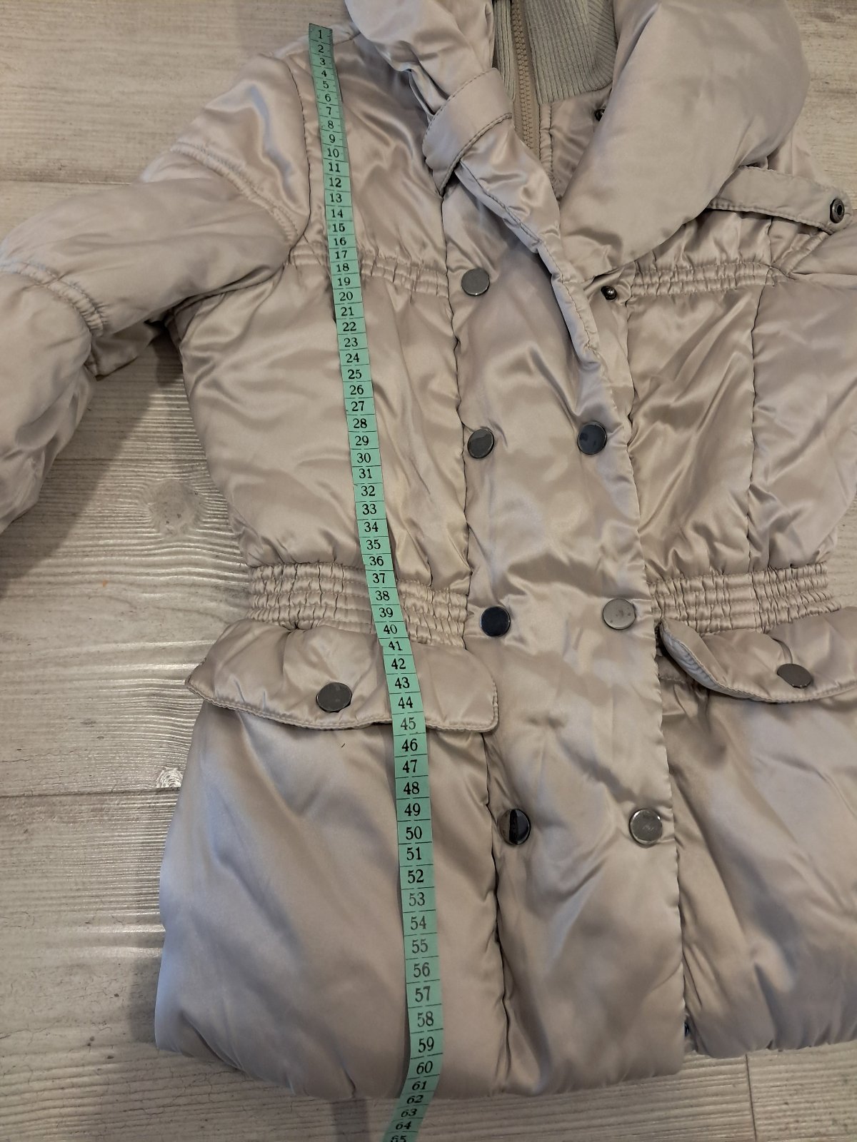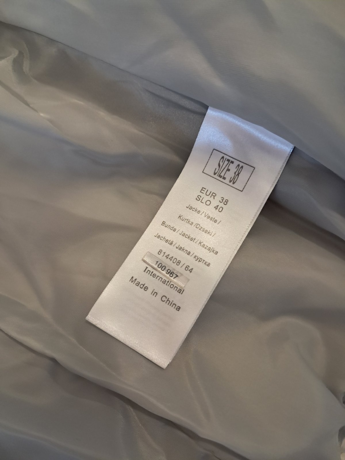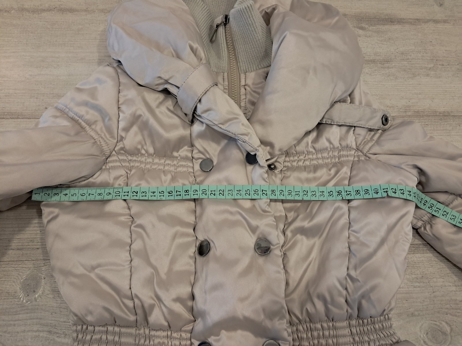 Predám krátku strieborno-šedú zimnú bundičku, veľ. 38/M, zn. Orsay. Jediné poškodenie - po opratí na gombíkoch vznikli drobné fliačky (viď foto), čo ale nebráni noseniu. Pekný nosený stav.