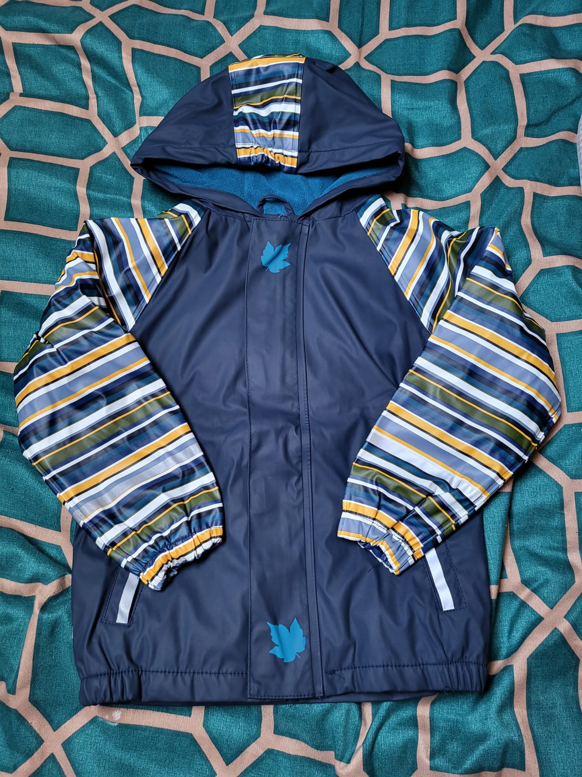 Tmavomodrá prechodná bundička s hnedým zipsom, veľkosť 116, značka Lupilu. Rozmery sú na fotkách. Nosená jednu sezónu, nepoškodená. Máme viacero detských vecí, môžete si zostaviť vlastný balíček. P...