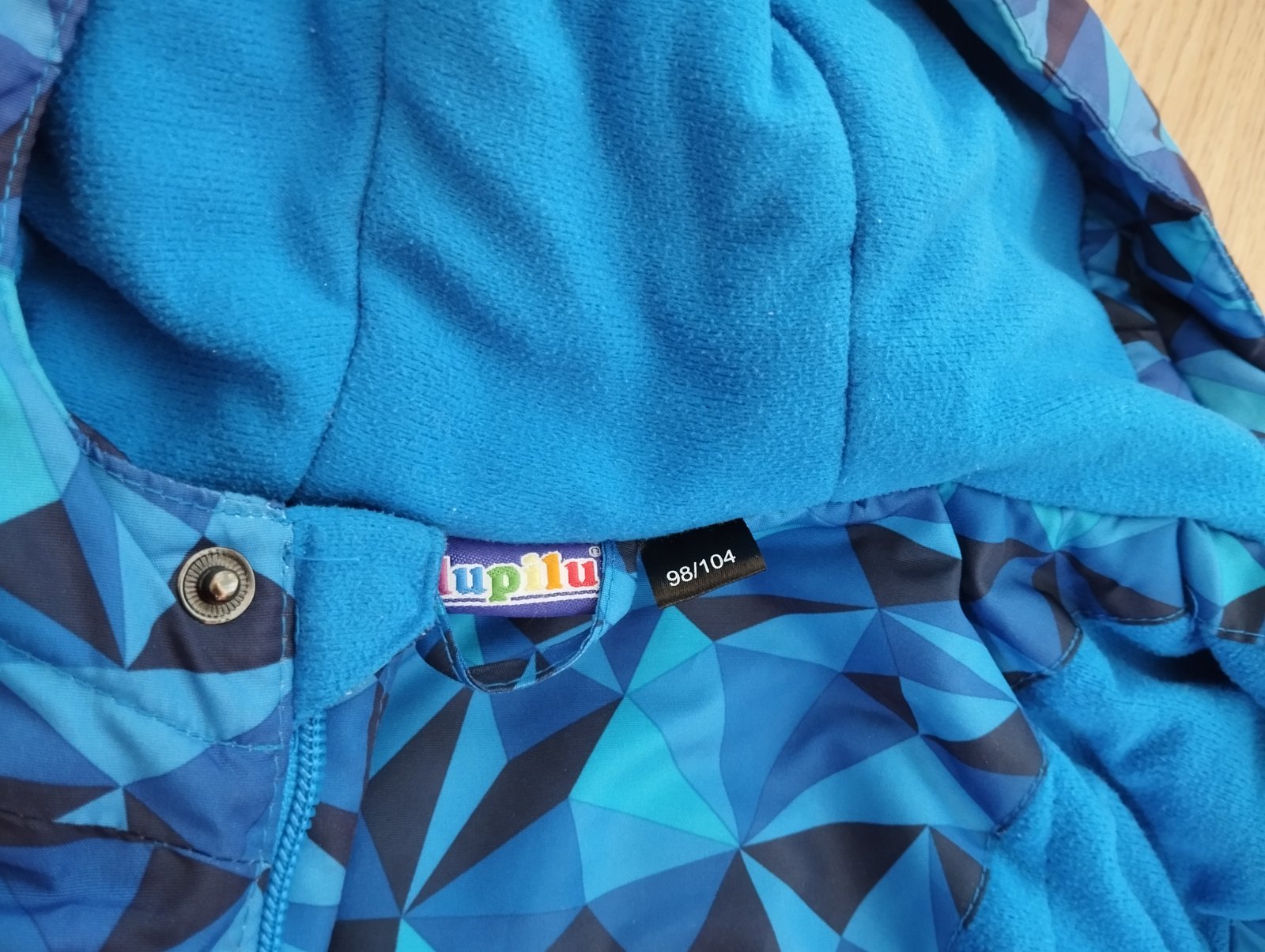 Bunda, modrá farba, znacka lupilu veľkosť 98-104, dlzka 45cm rukav od podpazuchy 30cm rukav od ramena 38cm +rameno 9,5cm, sirka od jednej podpazuchy po druhu 2x 39cm,cena 4,50