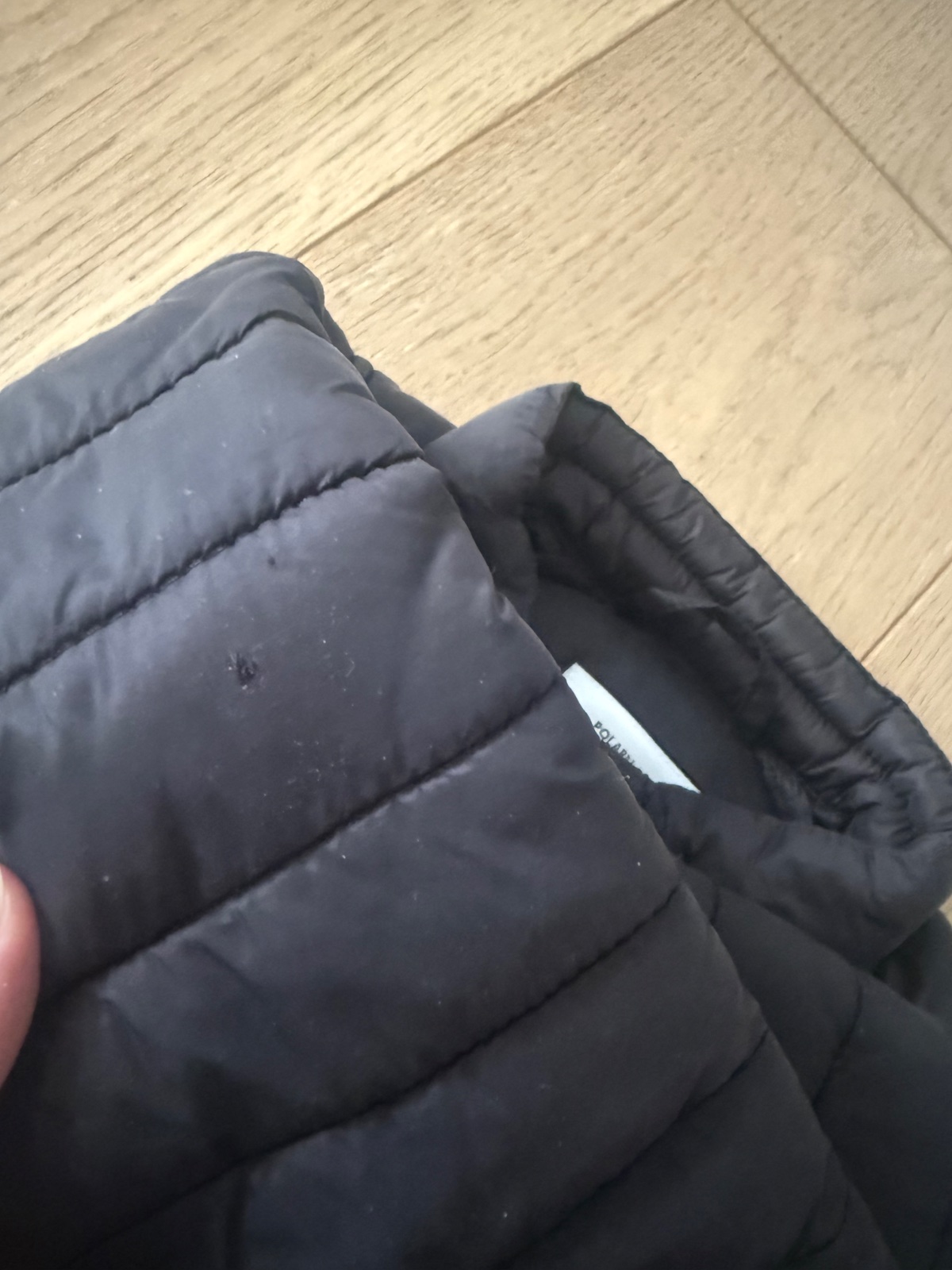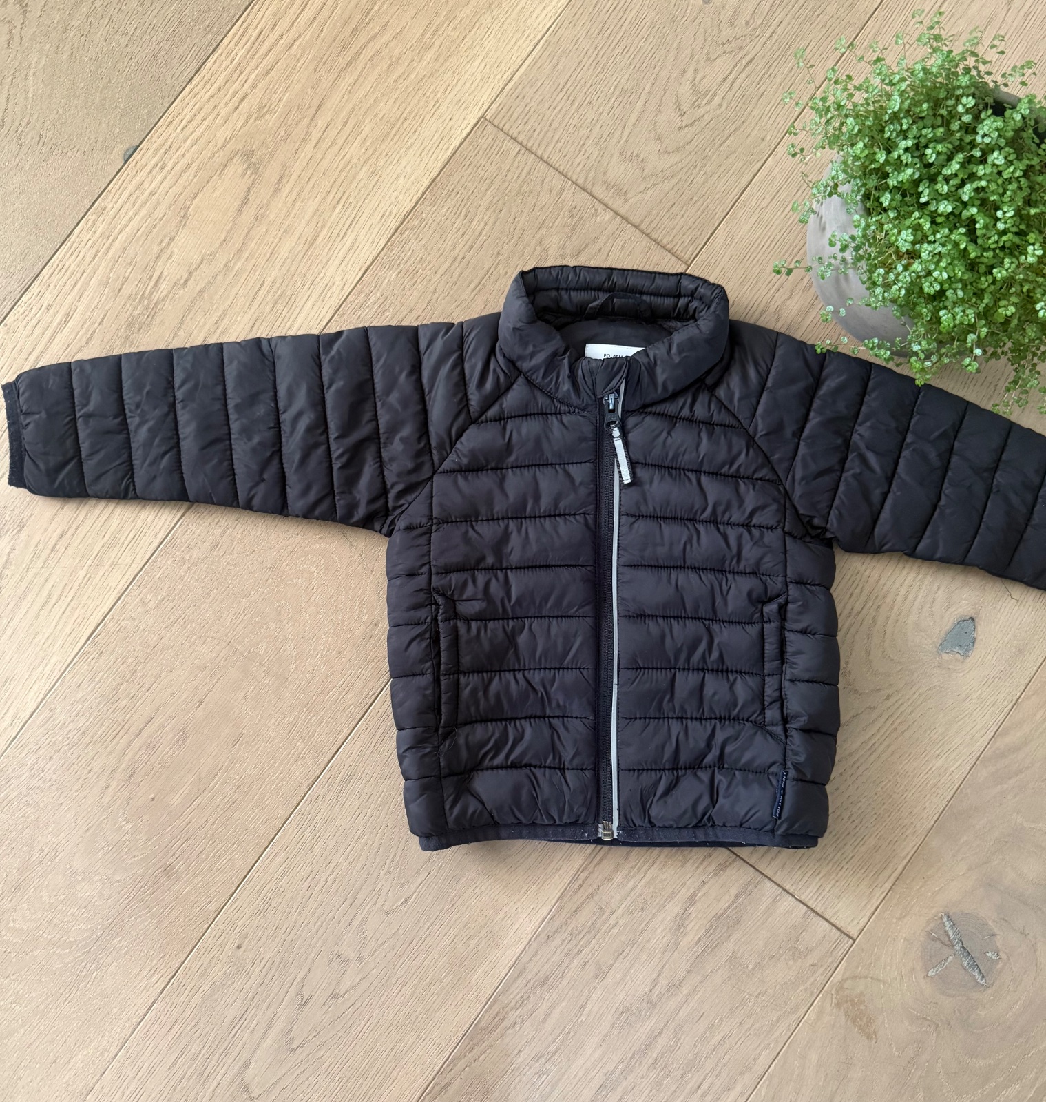 Krásna prešívaná bunda s reflexným prúžkom pri zipsu vhodná na miernu zimu, na jar, jeseň, je nosena častejšie čo vidno na patentoch (zmolky, dajú sa odzmolkovat) a pár zadrapnuti, avšak tým že je sýto čierna to nie je vidno a na ihrisku, pri šantení nebude ľúto, je stále veľmi pekná a na štýl frajerskej bundicky