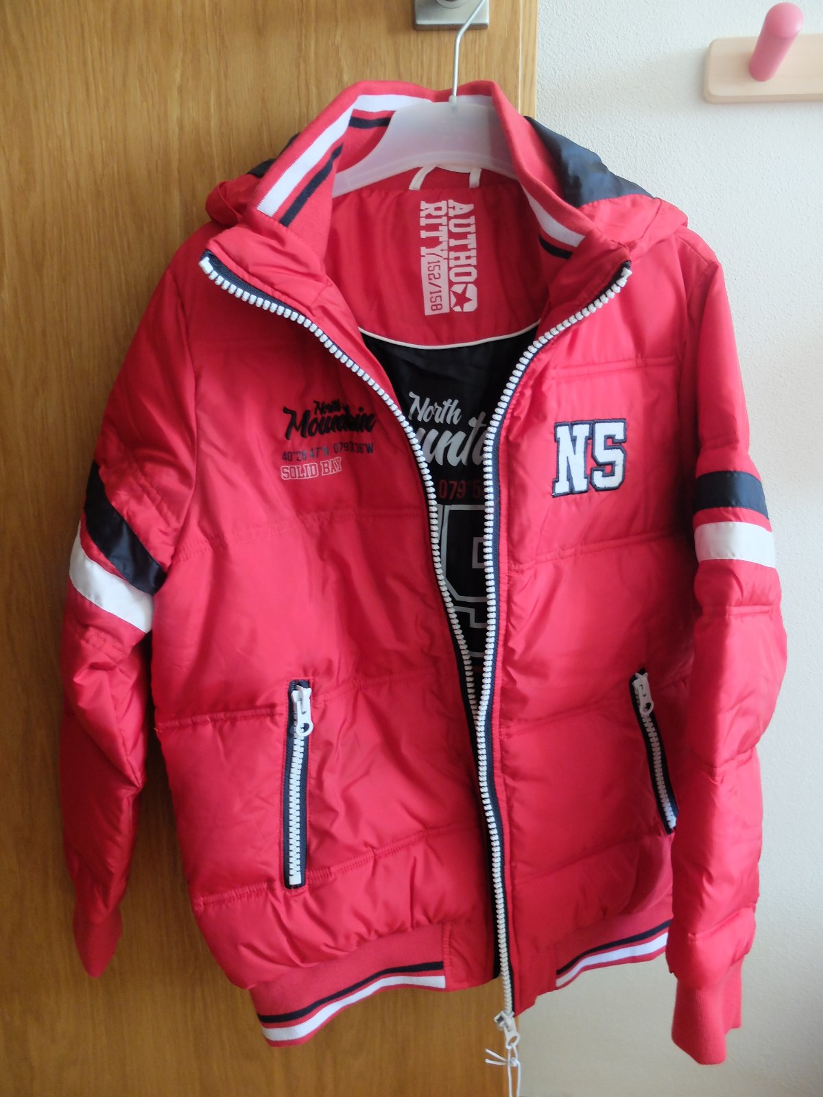 Zimna bunda Authority, vel. 152/158,.odolna proti vetru a vode. Celkova dlzka 68cm, sirka pod pazami 3x51cm, rukav od ramena 60cm, od krku 69cm. Zapinanie na zips a cvoky, reflexne prvky, vnutorny ...