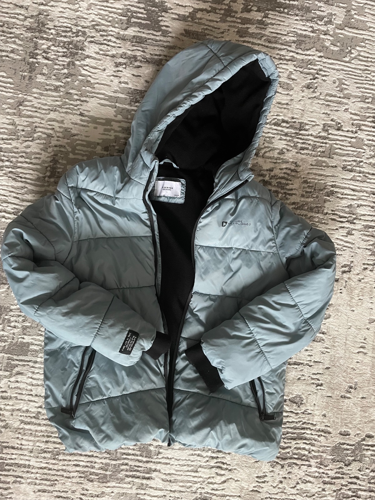 Predám zimnú bundu nosení len mojim synom č. 146 zn. Reserved. Dĺžka 65 cm Šírka 50 cm Dĺžka Rukáv od ramena 52 cm Dĺžka Rukáv od ramena 62 cm