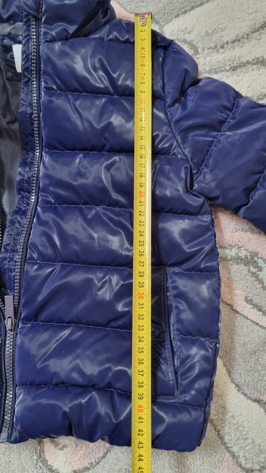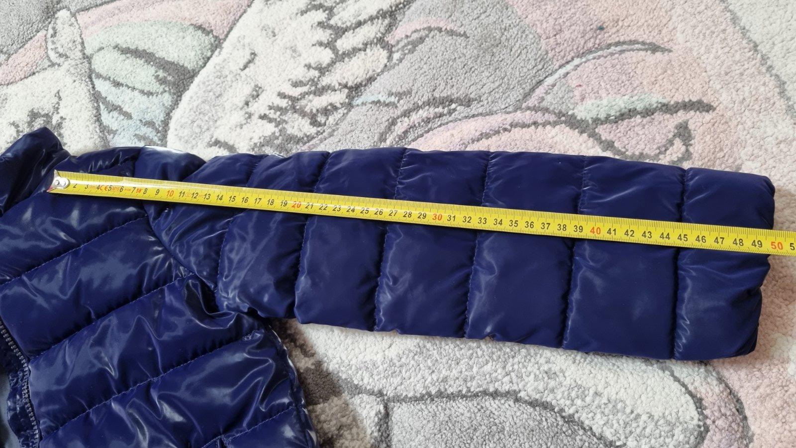 Výborný stav, nenašla som žiadne poškodenie. Originál bez kapucne. Nebola nepremokavá, ale bola pogumovaná, jemné mrholenie odolala. Trošku nafúknutá, na jeseň aj na tričko stačila.