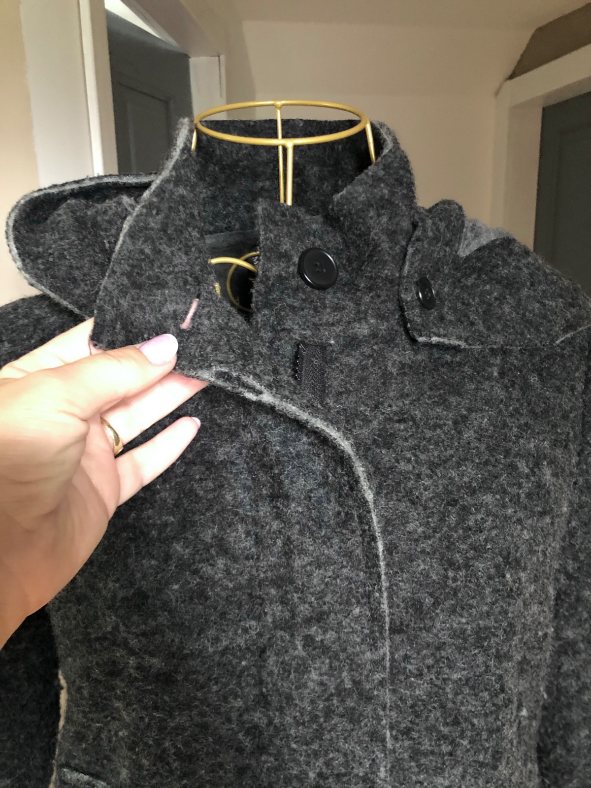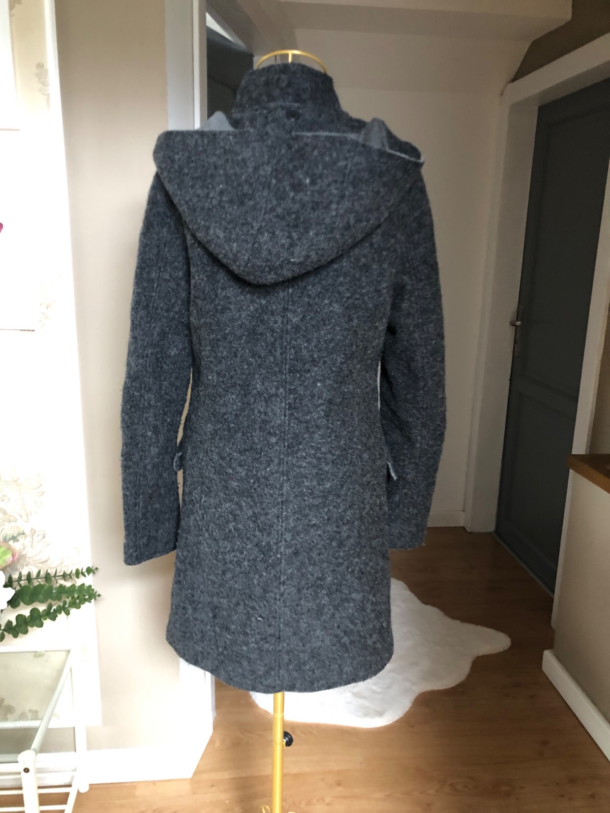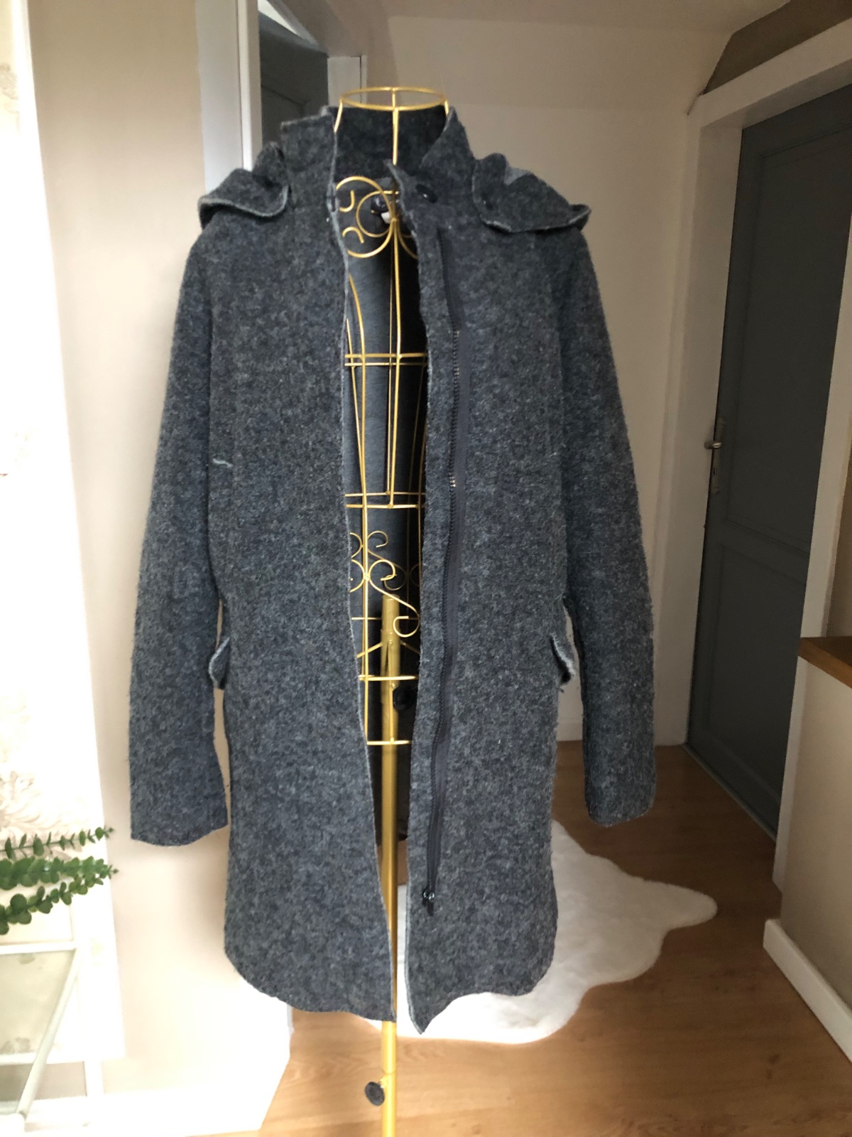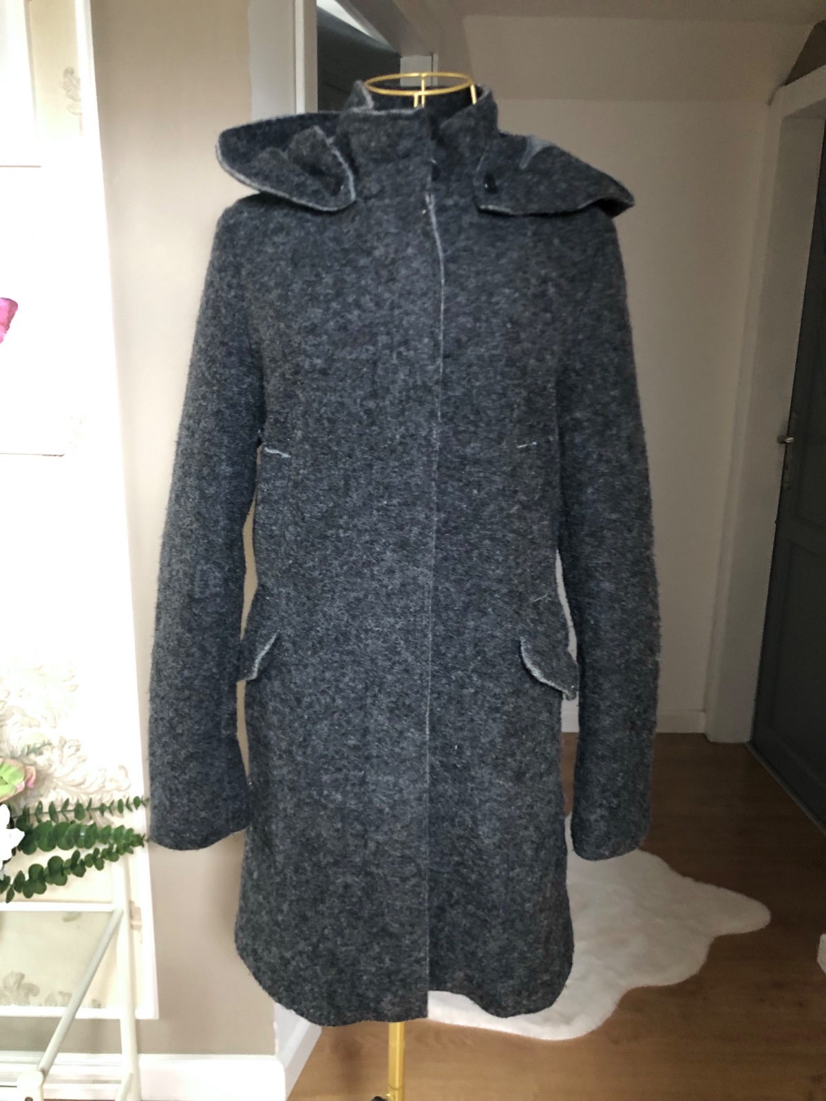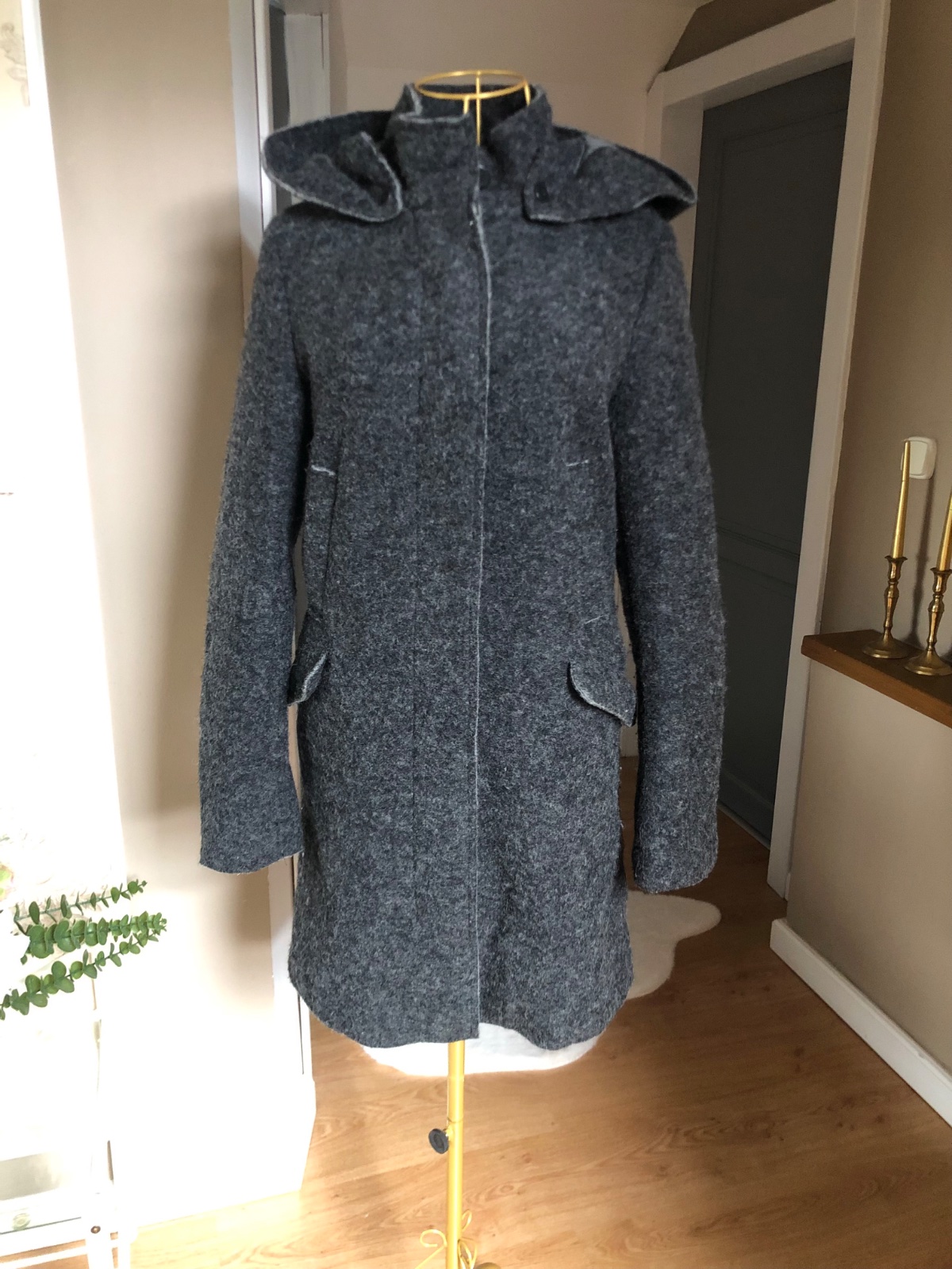 Luxusný tmavosivý kabát, zapínanie na zips, všité vrecká, aj na prsiach, podšité, stredne hrubý, super stav.