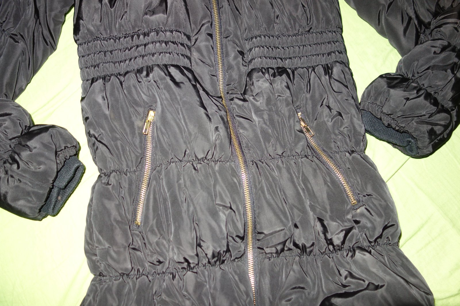 ROZMERY: dlzka rukavu od goliera: 66cm, rukav od pleca: 56cm, celkova dlzka od pleca: 79cm, sirka pod pazuskami: 39cm