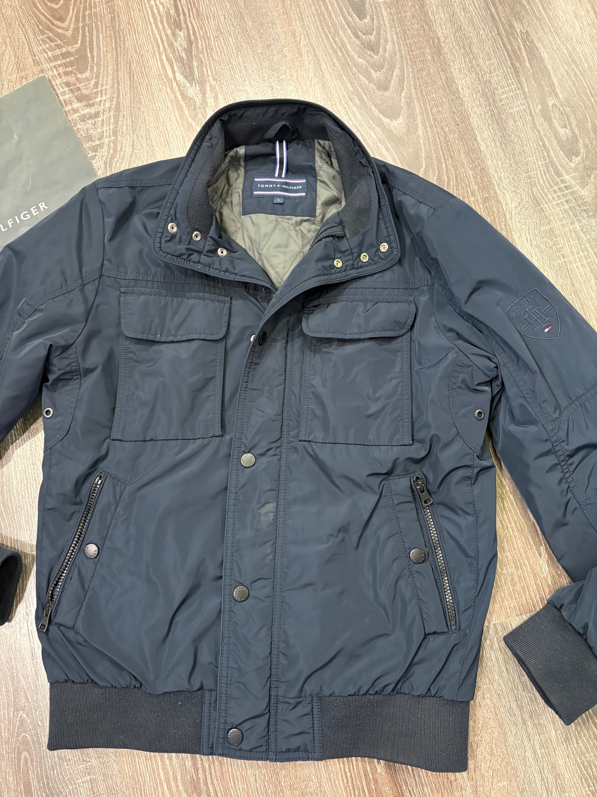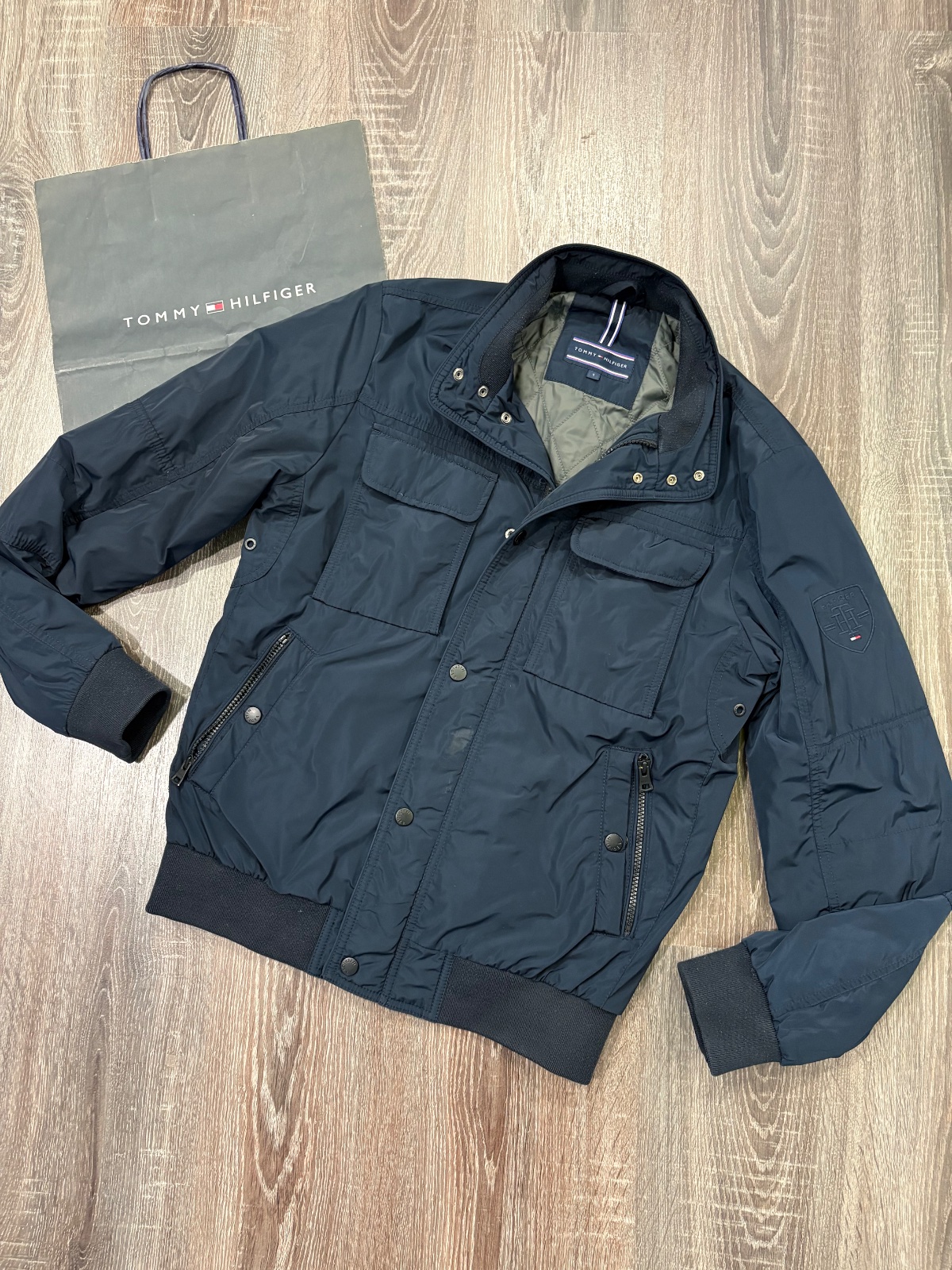 05.Tommy Hilfiger frajerska panska prechodna vetrovka,velkost S,super stav,vpredu mala svetla škvrna( neskusalaa som čistit) možno pustí,no pri noseni ju ani nevidiet.Dlzka je 69cm,dlzka rukava od krku je 85cm a sirka v podpazusi je 55x2cm,dole je patenr na gumku