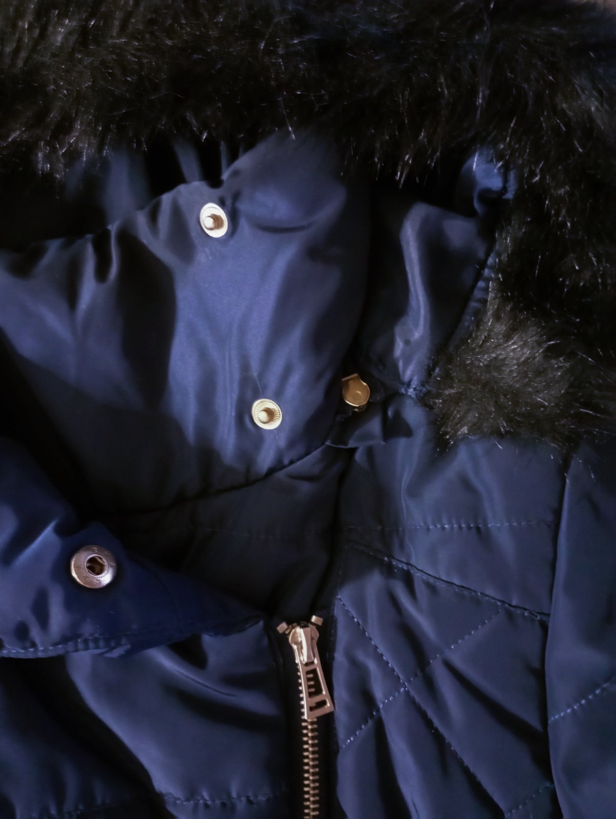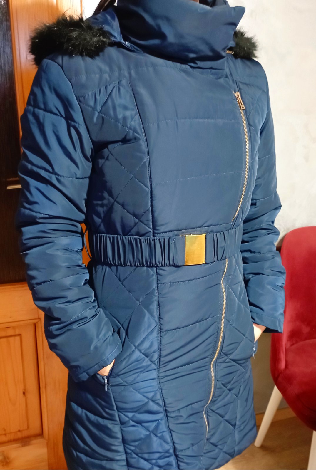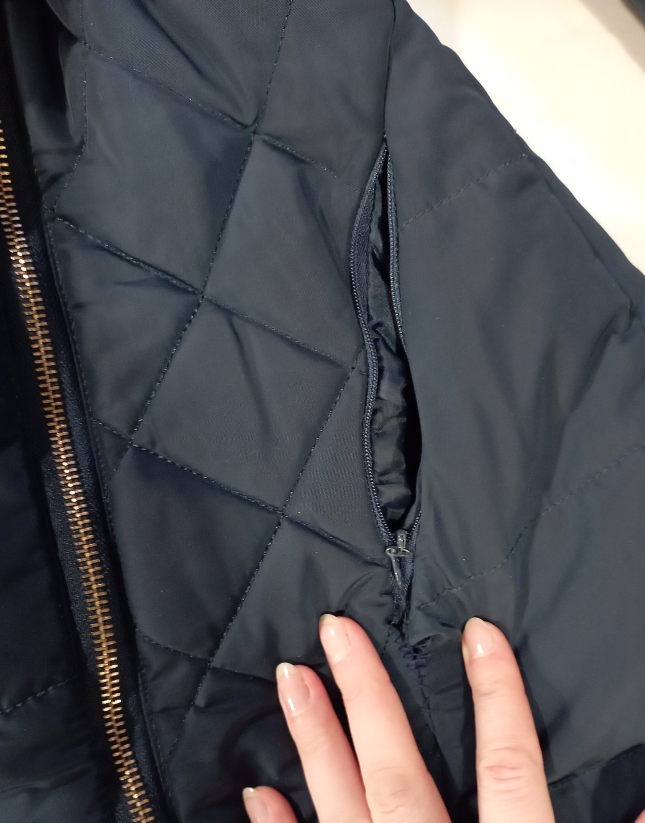 Na fotke je oblečená na postave vysokej 165 cm a veľ. S. Kapucňa sa dá odzipsovať. Zipsy na vreckách idú ťažšie a pod jedným z nich povolila nitka. Zohľadnené v cene.