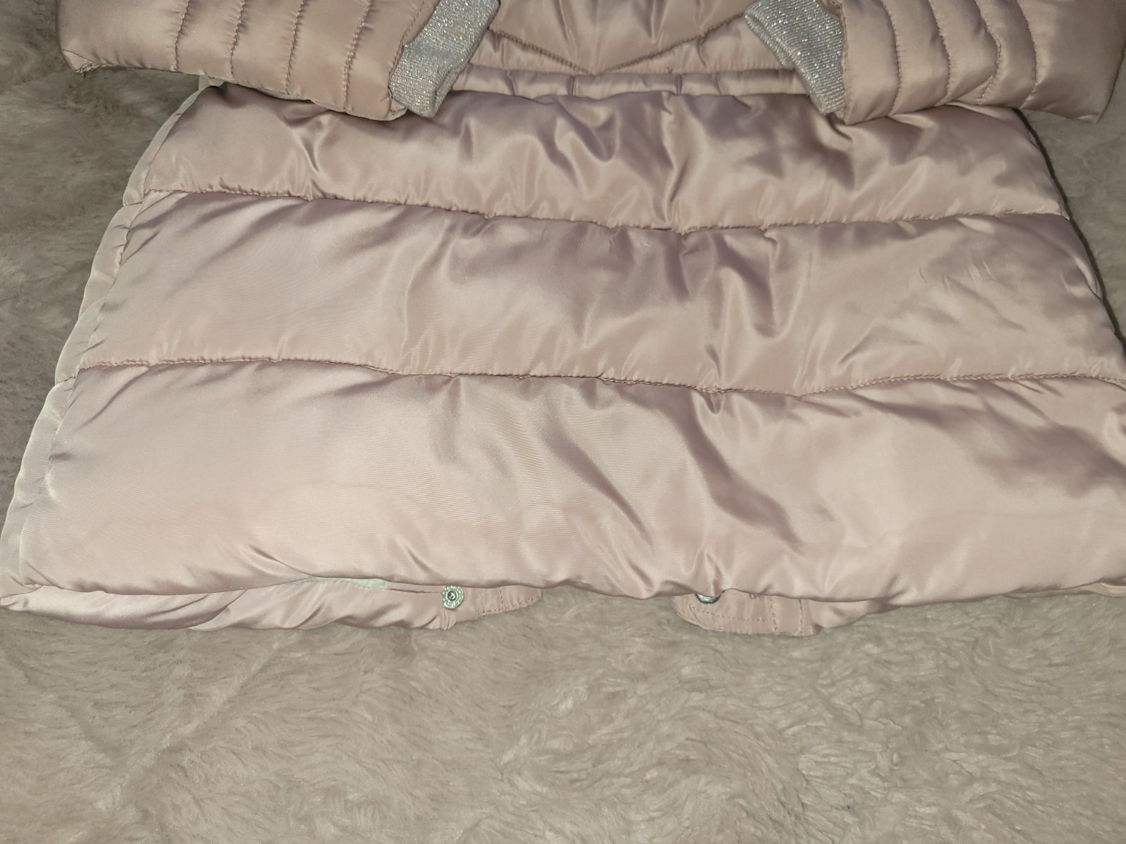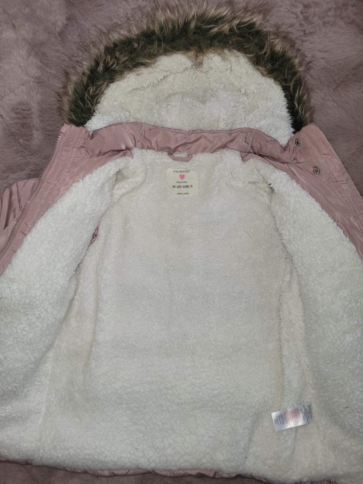 Prijemna tepla Bunda Next 116 krasna pudrova farba, s kapucnou (da sa odopnut) ozdobena kozusinkou, zateplena kozusinkou. Dlzka 53 od pazusky k pazuske 37 x 2 rukav od krku 47 + 1,5 cm vnutorna ma...