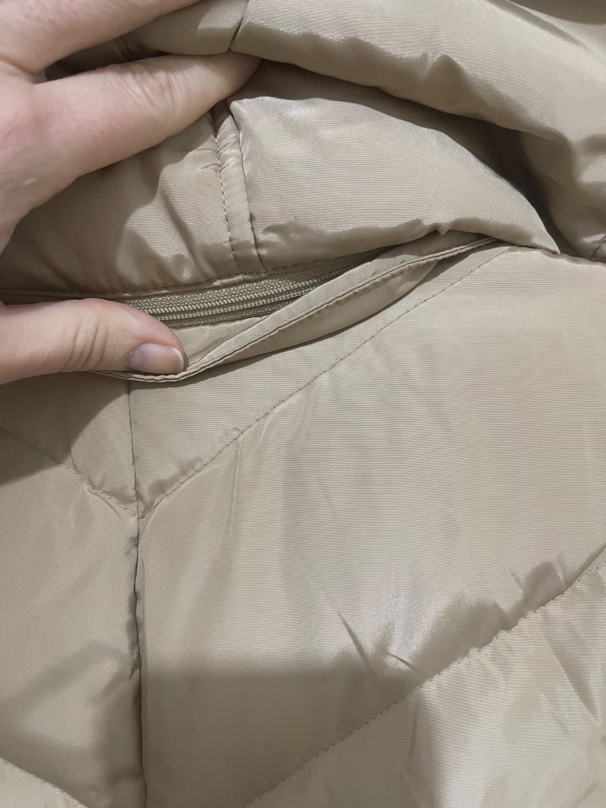 Krásna, teplá, v top stave, zlatobéžovej farby, veľkosť S, odnímateľná kapucňa. Dľžka po kolená pri výške 165 cm. Pri osobnom odbere alebo rýchlom jednaní dohoda na cene možná. V top stave.