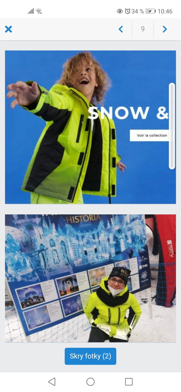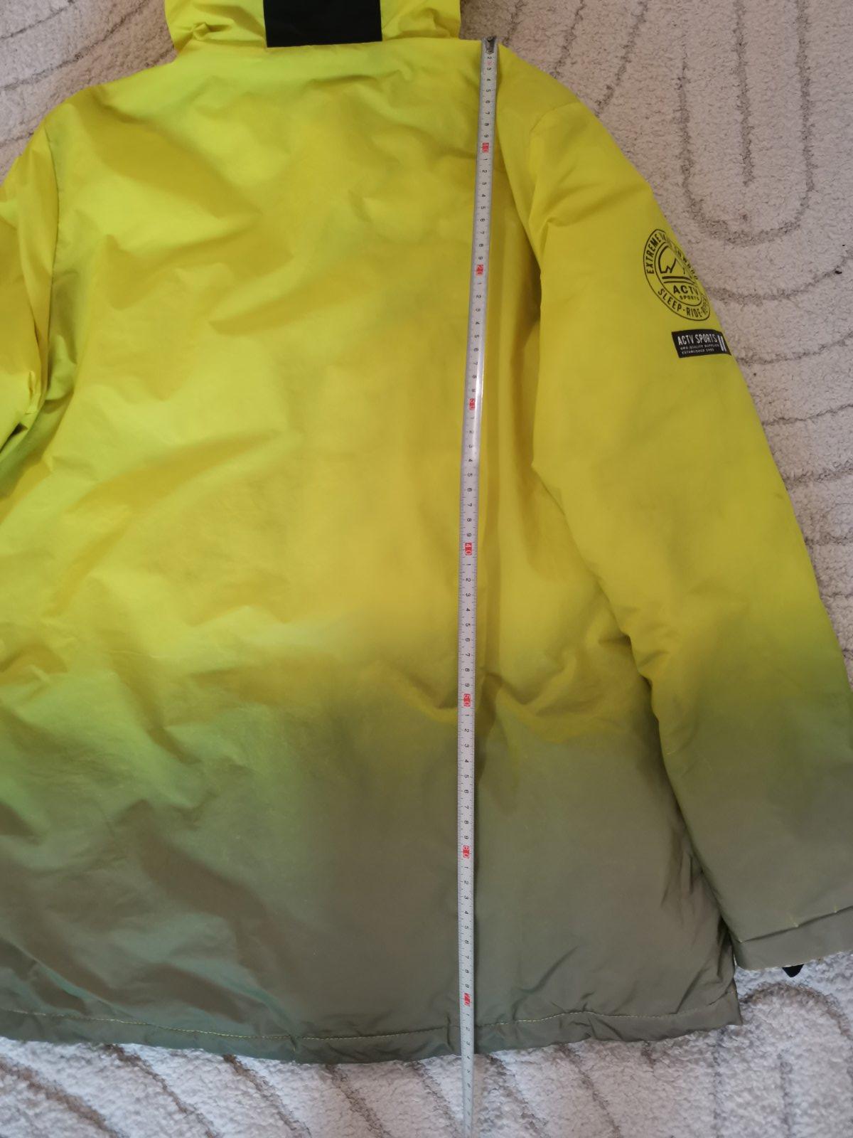 Teplá, zachovalá, nepremokavá, nielen lyžiarska bunda. Farby neónové, na svahu neprehliadnuteľné. Množstvo vreciek, samozrejme všetky zipsy funkčné. Kapucňa ako aj spodok bundy sa dá stiahnuť. Nafotené fliačiky vpredu možno praním vyjdu, neskúšala som.