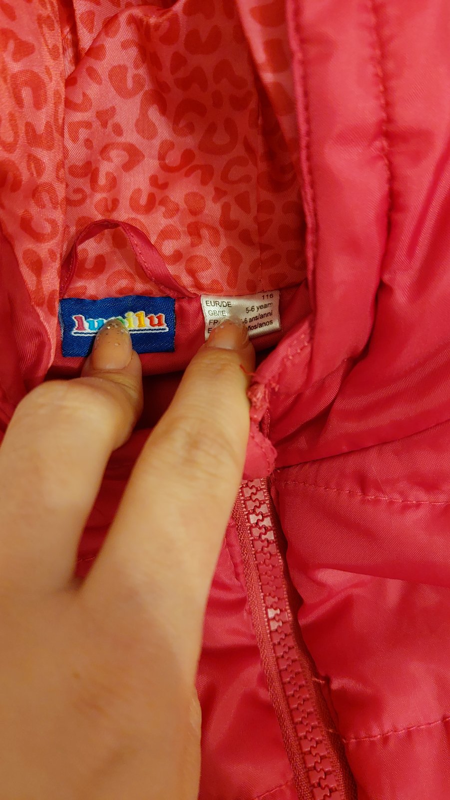 Pekná a praktická dievčenská vesta. Tmavošedá farba, na ktorej nevidno zaspinenie, zvnútra má pekný plameniakový vzor. V peknom zachovalom stave, len na spodnom leme vidno mierne opotrebenie - viď ...