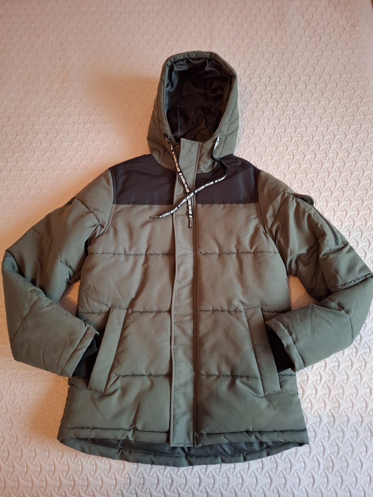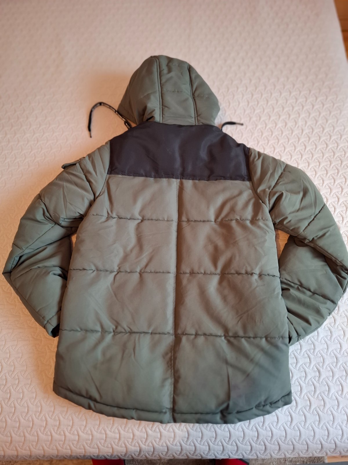 Pánska zimná bunda. Minimálne nosená, bez akýchkoľvek známok použitia. Veľkosť Má, hodila by sa aj na L. Kombinácia hnedej zo zelenou, vnútro tmavozelené (fotka zkresľuje farbu). 2 vnútorné vrecká...