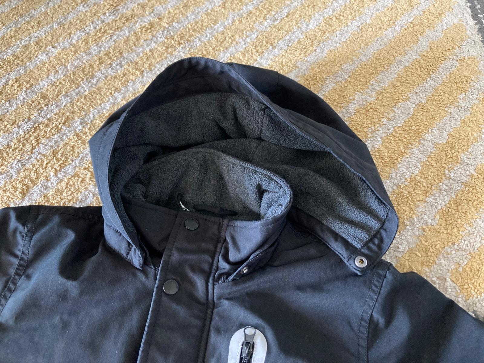 výborný stav, krásna, kvalitná podšitá teplá bunda s vodným stĺpcom, párkrát oblečená, bez poškodení, bez žmolkov, bez fľakov, zateplená bunda s vysokým golierom s flísovou podšívkou, odnímateľnou kapucňou a skrytým zipsom vpredu, PC 59,90€