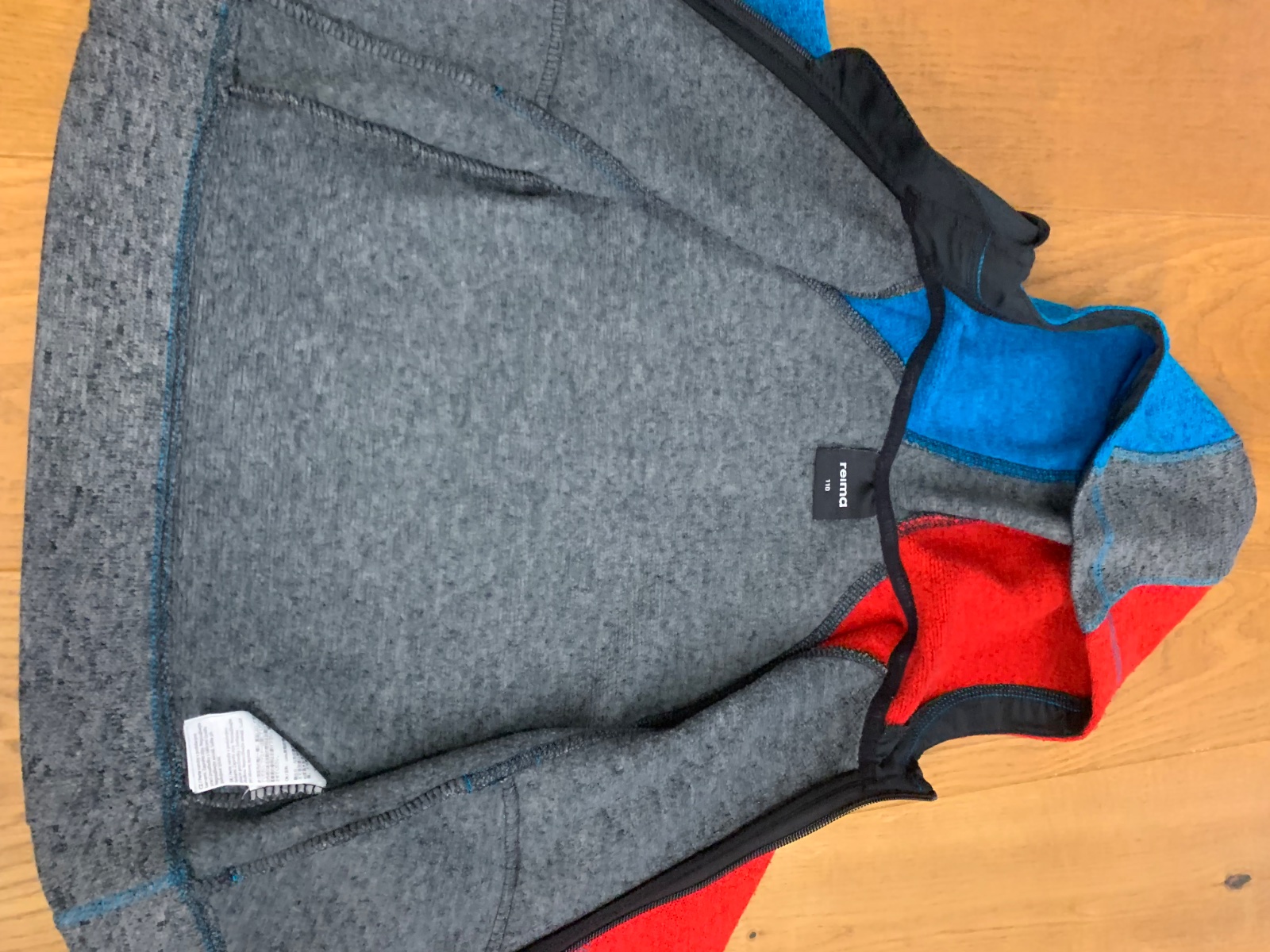 Krásna, kvalitná, nosená flísová bundička. Značená ako 110 ale sedí aj ako 116, nosená, žmolky. Kapuca na pevno, po bokoch 2 skryté vrecká. Nosili sme ako 2. vrstvu na termo a pod bundu, alebo ako vrchnú vrstvu - bundičku.